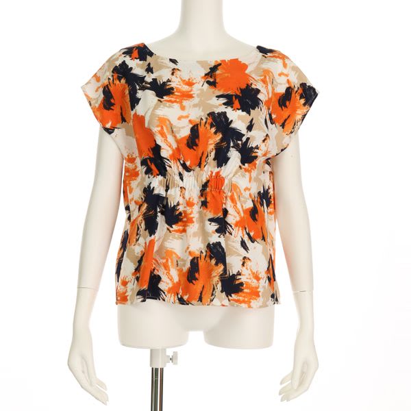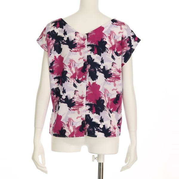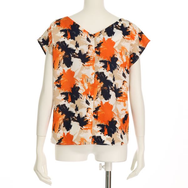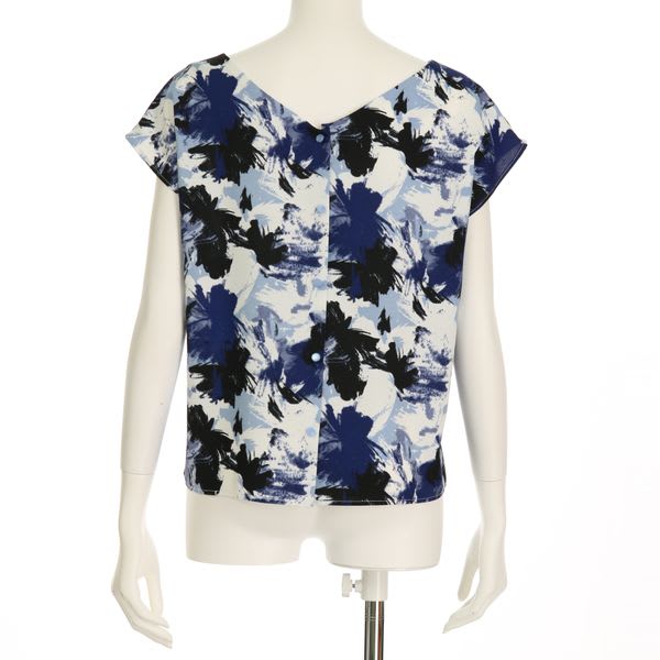 前後2wayで楽しめる、華やかな柄ブラウス。