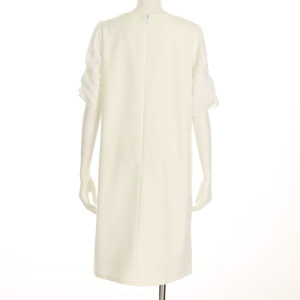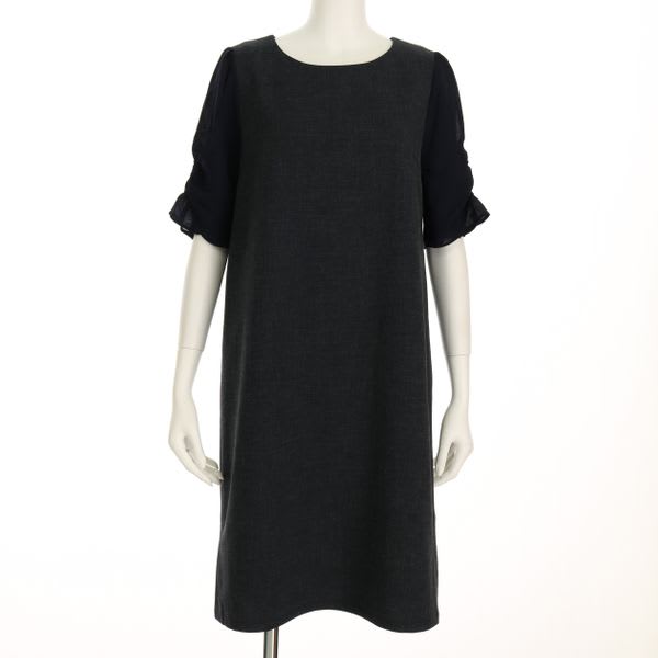 袖のデザインがポイントのワンピース。袖の透け感が女性らしい雰囲気にしてくれますね。バレエシューズで上品に、ポインテッドトゥパンプスでエッジの効いた着こなしも素敵ですよ!