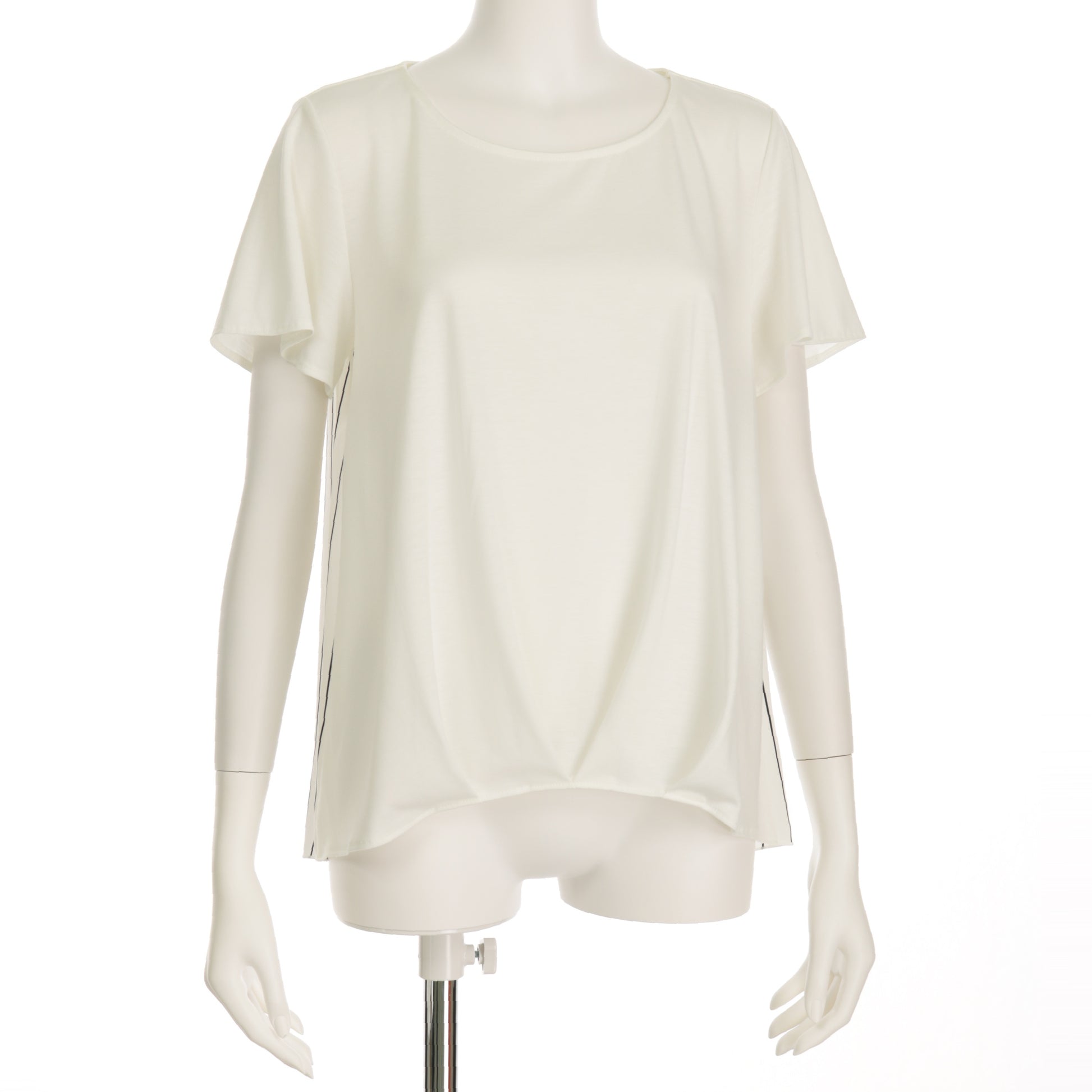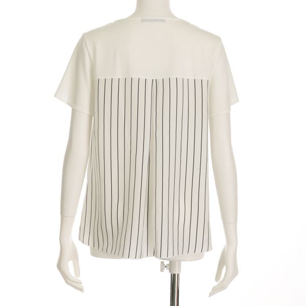 バックのストライプ柄や裾のタックがポイントのカットソー。デニムパンツに合わせてラフに、フレアスカートにインしてフェミニンにと、色々なスタイルをお楽しみくださいね。