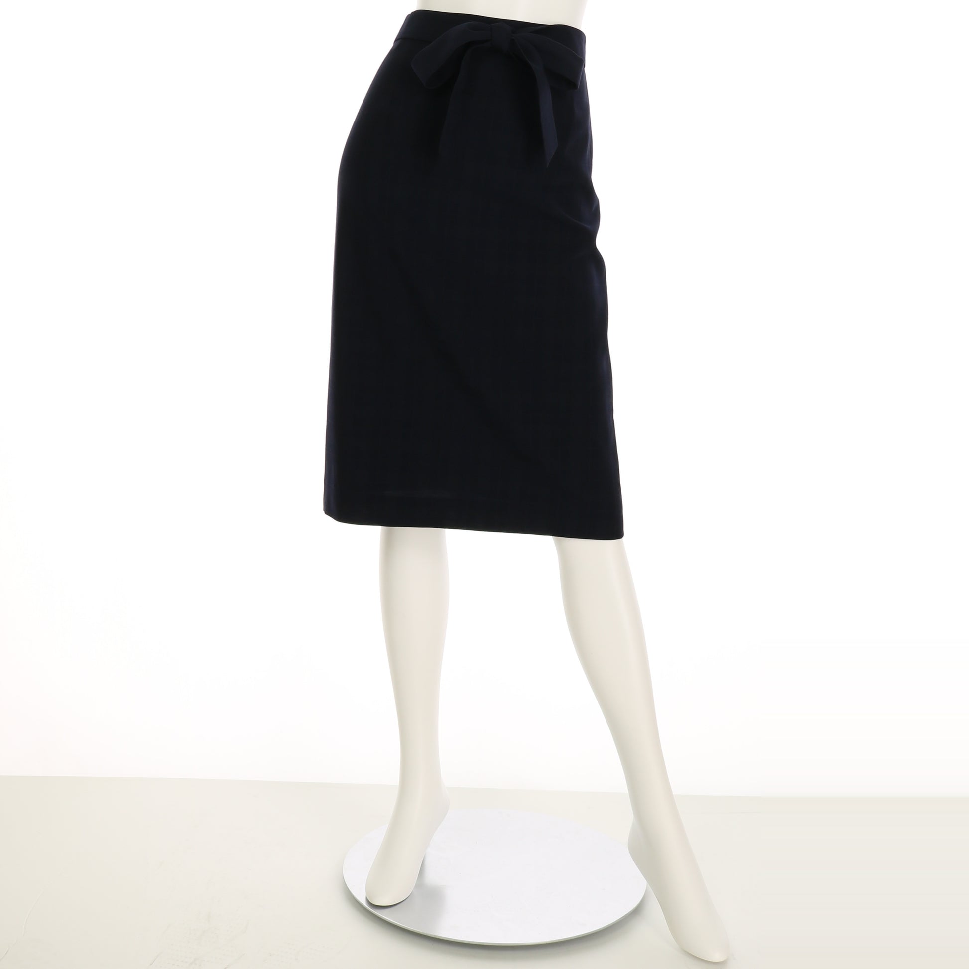 ウエストリボン付きのシャドーチェック柄タイトスカート。スキッパーシャツを合わせてきちんと感のあるスタイルに、フレアスリーブのブラウスを合わせてフェミニンな着こなしも素敵ですね!