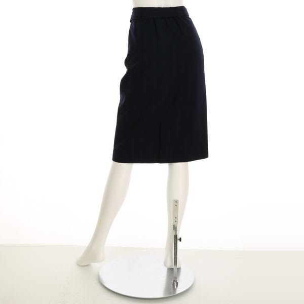 「日なたでよーーく見るとチェック柄。でもほぼ紺ですね。真面目すぎでつまらない。ネイビーもチェックも長めのスカートもトレンドですね。でも私にはなんか地味でした。同梱のブラウスはやめてもう少し遊びのあるカットソーと合わせたら、まあなんとか外出できました。職場の友だちにはいいよと言われましたが。リボンがあるから少し救われたけど、地味で履いている時のテンションもイマイチでした。写真を撮ってみたら意外に似合ってました(笑)」