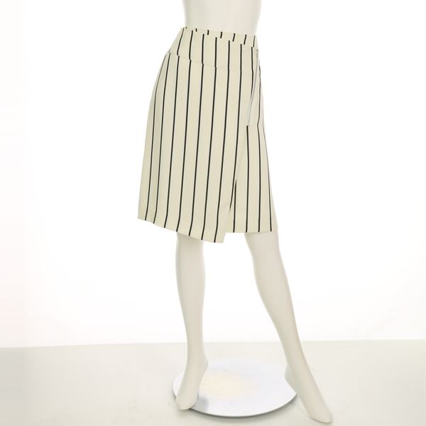 ストライプ柄のラップ風スカートは、コーディネートのアクセントになる1枚。シャツを合わせてきれいめなお仕事スタイルに、カットソーと合わせたお出かけスタイルも良いですね。