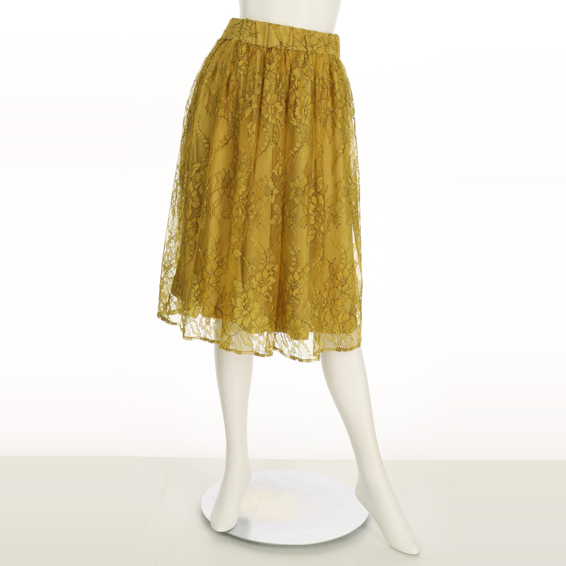 レースギャザースカートは、女性らしい印象の1枚です。ブラウスを合わせて上品スタイルに、ハイゲージニットを合わせてきれいめカジュアルなスタイルも良いですね。