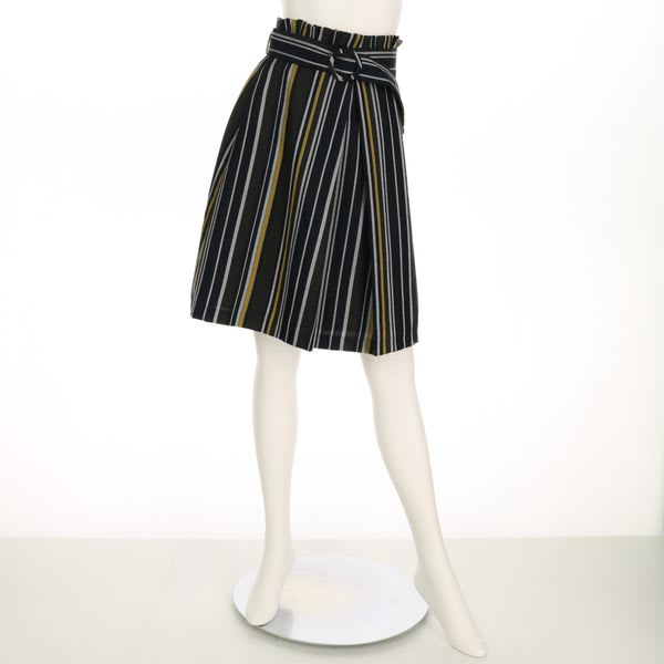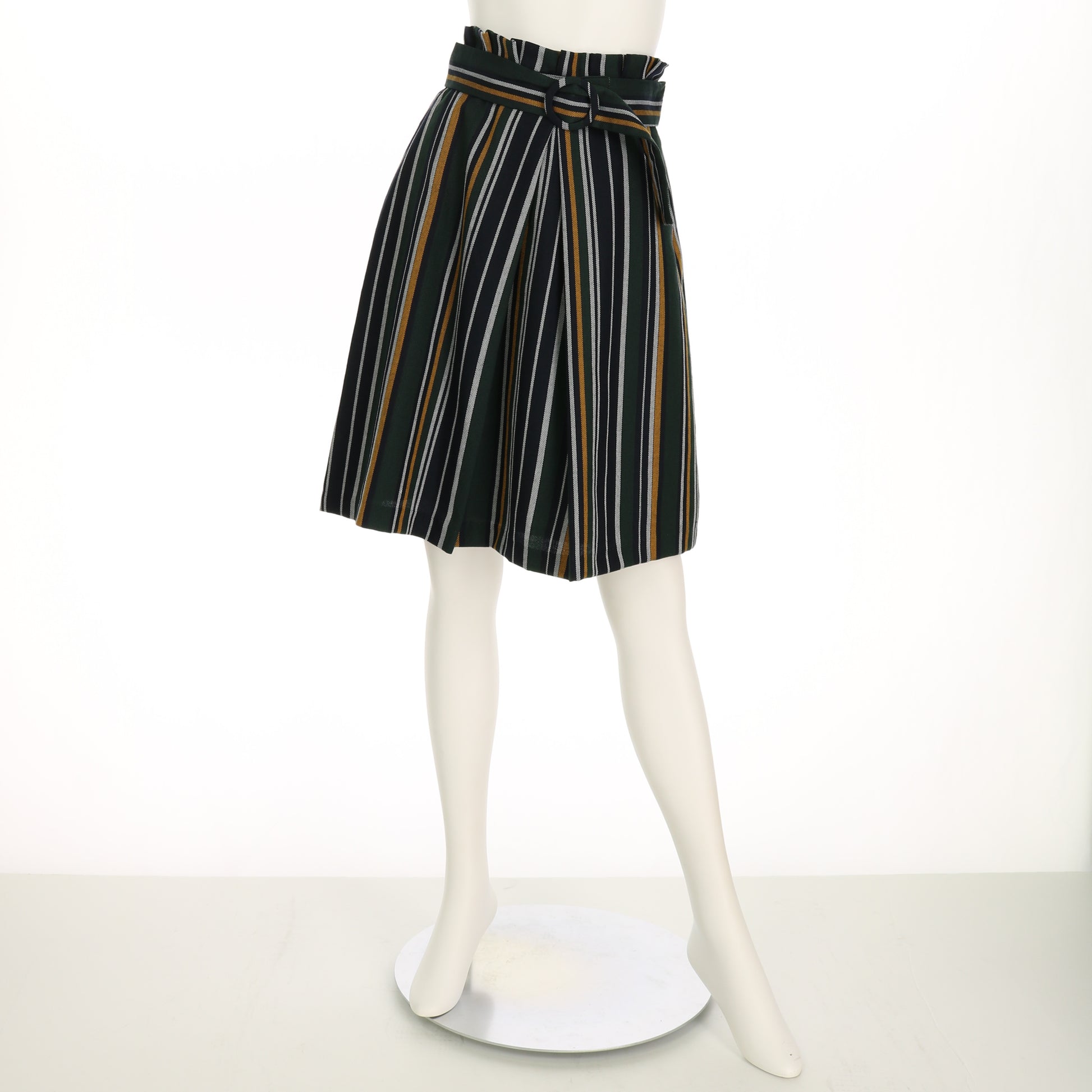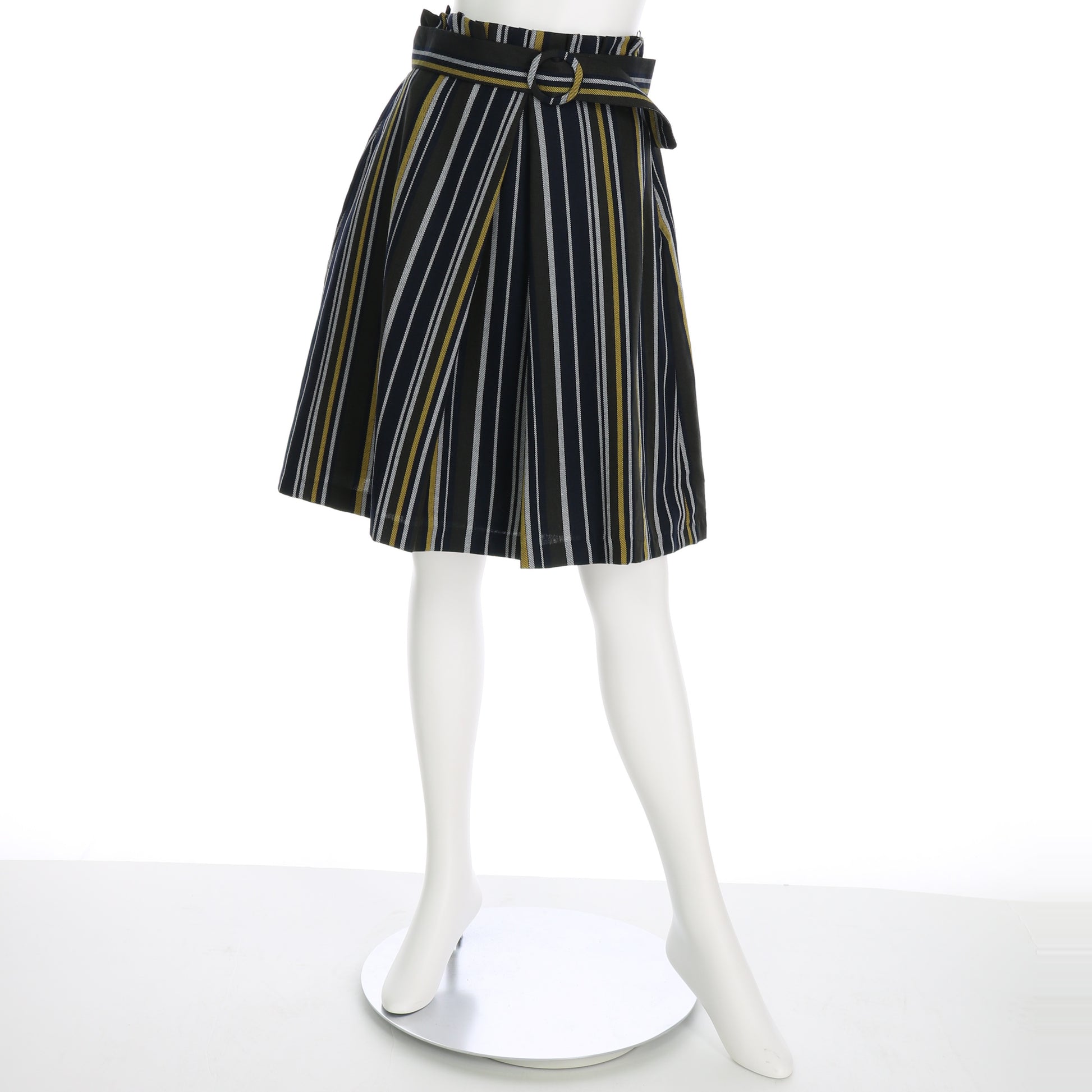 ウエストのベルトがアクセントになったストライプ柄スカート。フレアスリーブブラウスを合わせてレディライクに、シンプルなカットソーを合わせてきれいめカジュアルスタイルもいいですね。
