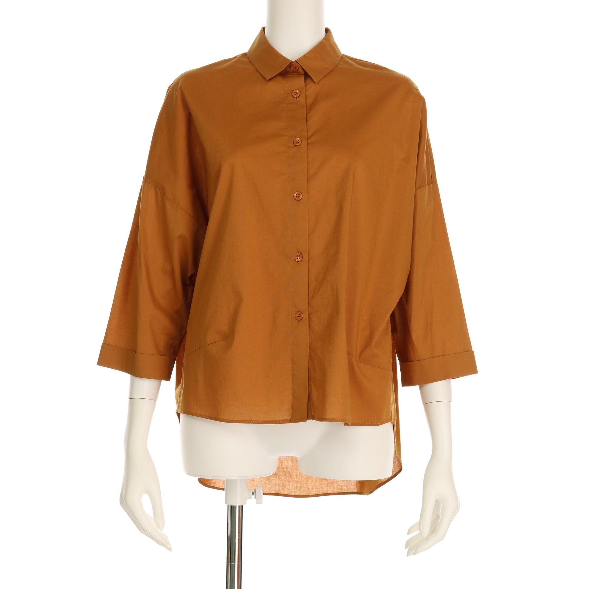 後ろ丈長めデザインの襟付きシャツ。ロングスカートを合わせて女性らしい着こなしに、レザーパンツを合わせてモード感のある着こなしもおすすめです。