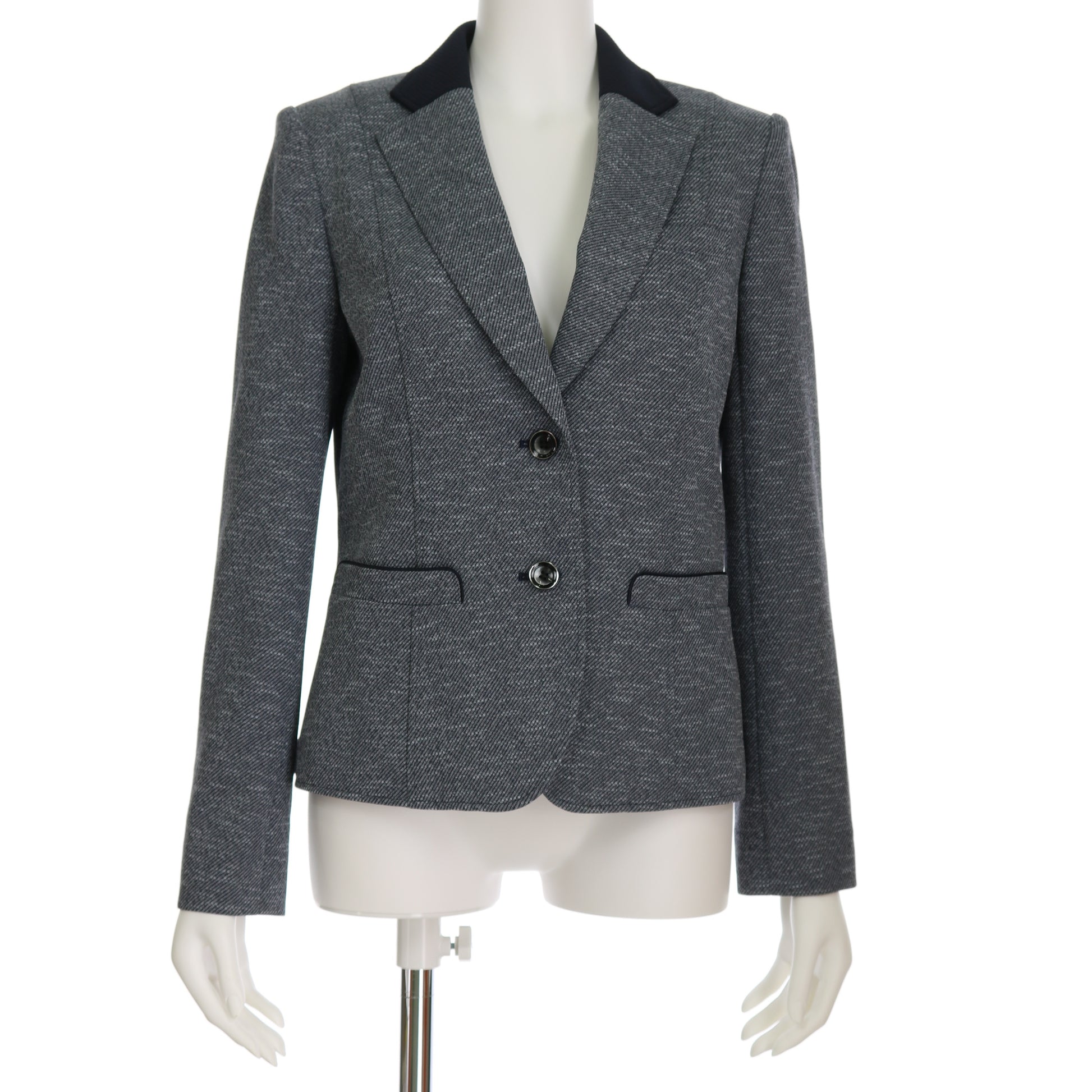 バイカラーの襟がポイントのジャケット。インナーには、ハイネックカットソーを合わせてカジュアルに、襟付きシャツを合わせてオフィススタイルにしてもいいですね☆