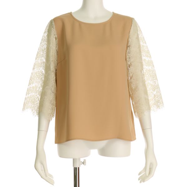 お袖の透け感がポイントのブラウス。レース切り替えが女性らしい印象に。