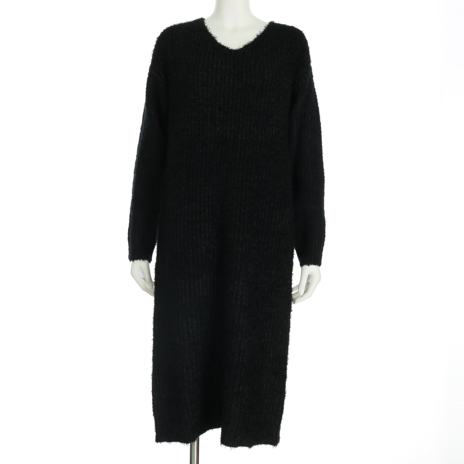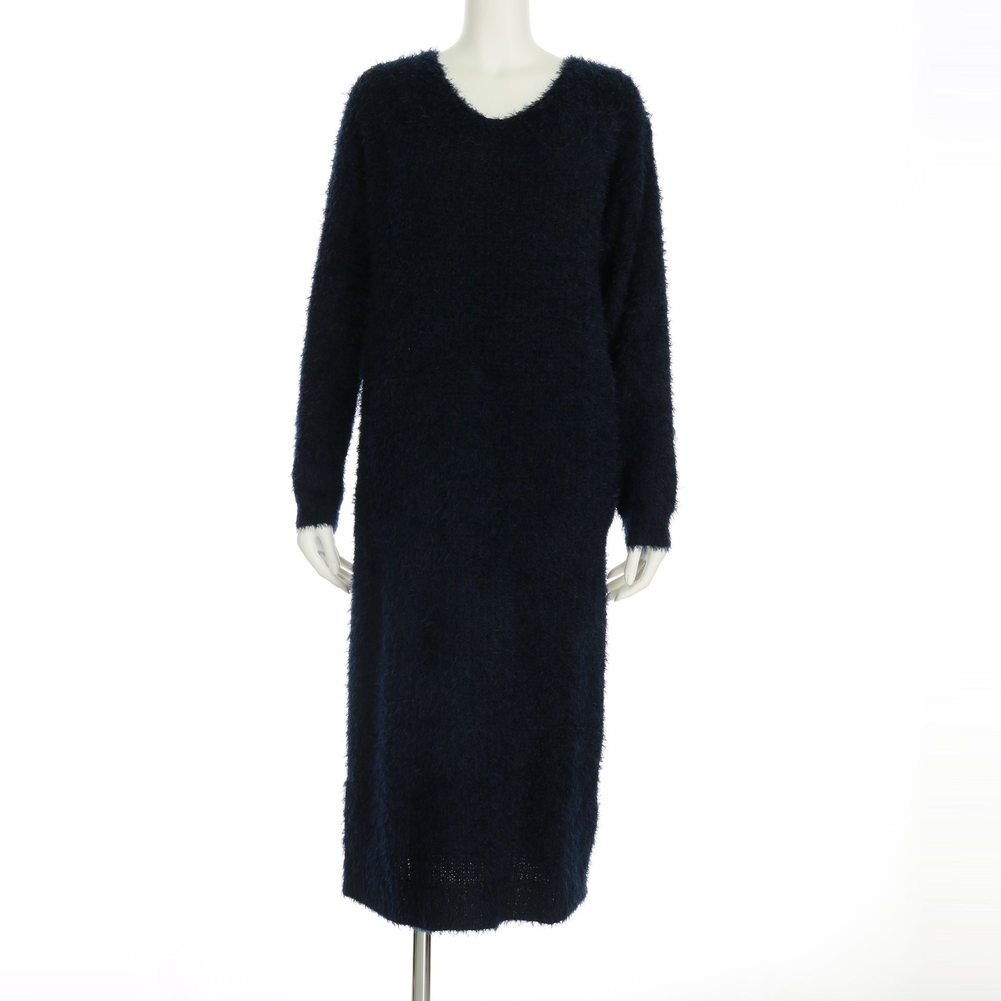 シャギーニットワンピース。タイツとヒールパンプスを合わせてきれいめカジュアルに、ロングブーツを合わせて女性らしい着こなしも◎です。