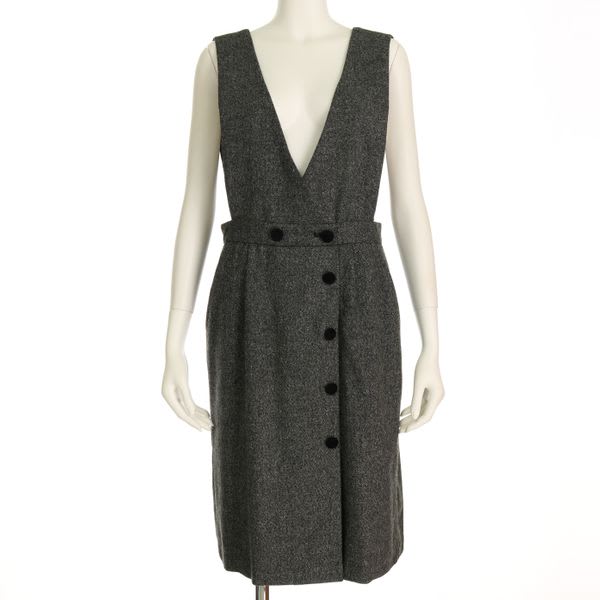 ラップ風のジャンパースカート。リブニットと合わせてすっきりとに着こなしたり、レースのブラウスを合わせてフェミニンテイストにも着られますね!