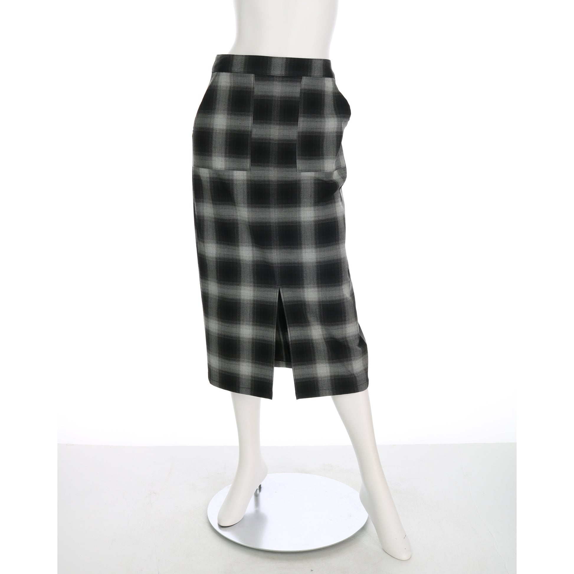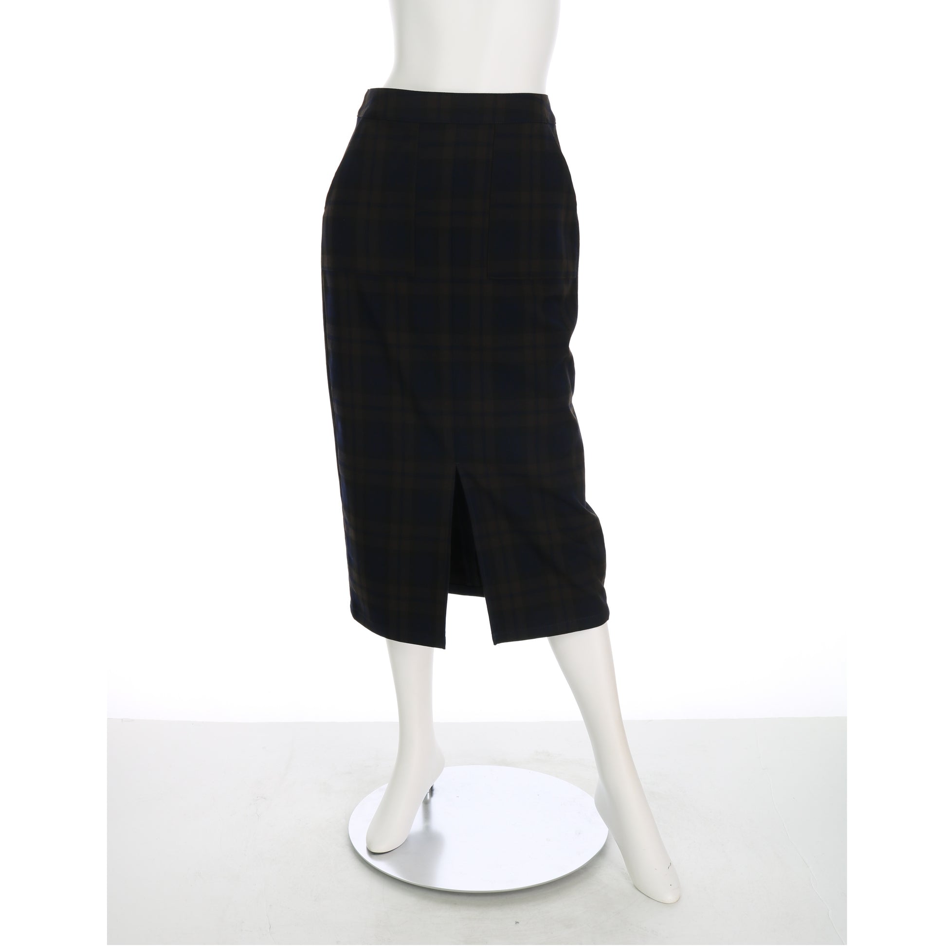 アウトポケット付きのチェック柄タイトスカート。襟付きシャツを合わせてオフィススタイルに、ゆったりとしたカットソーを合わせて休日のお出かけスタイルも◎。