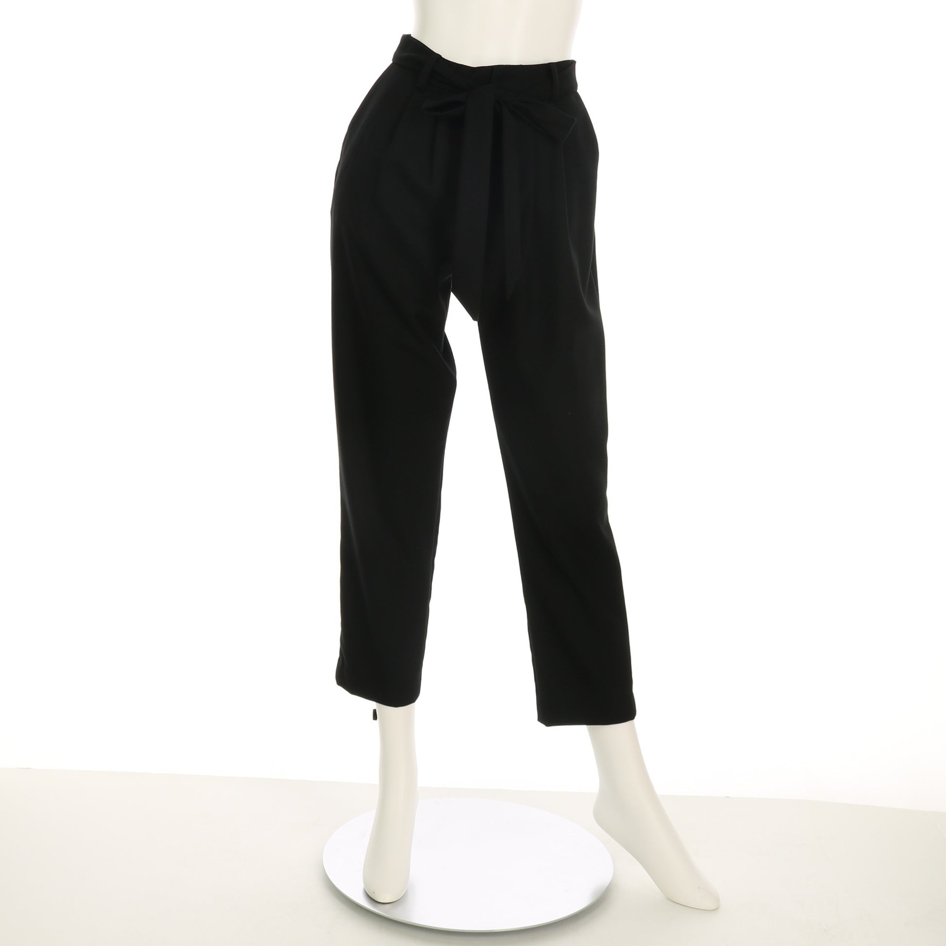 ウエストリボン付きテーパードパンツ。スキッパーシャツを合わせて甘辛MIXスタイルに、ボートネックカットソーを合わせて女性らしい着こなしも◎