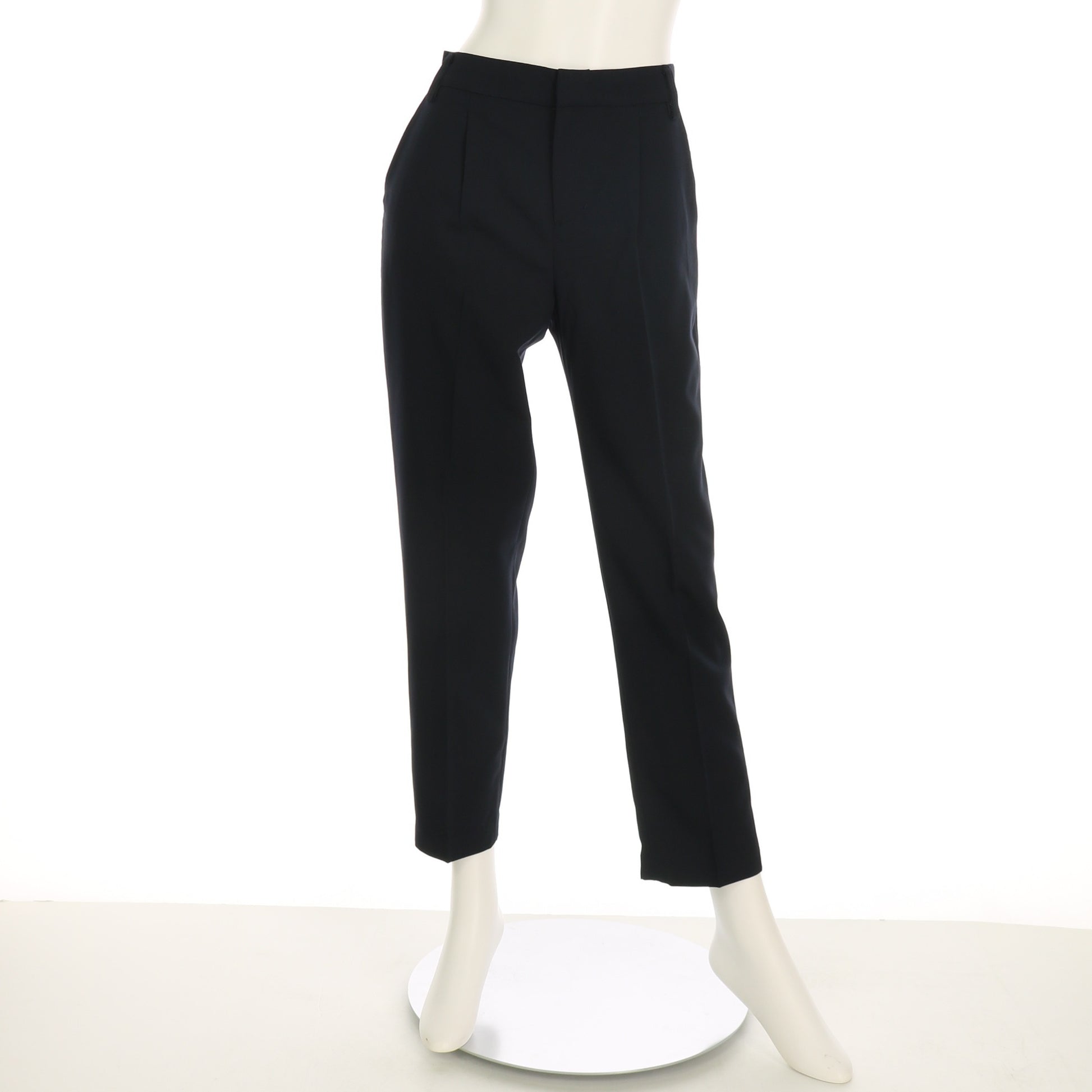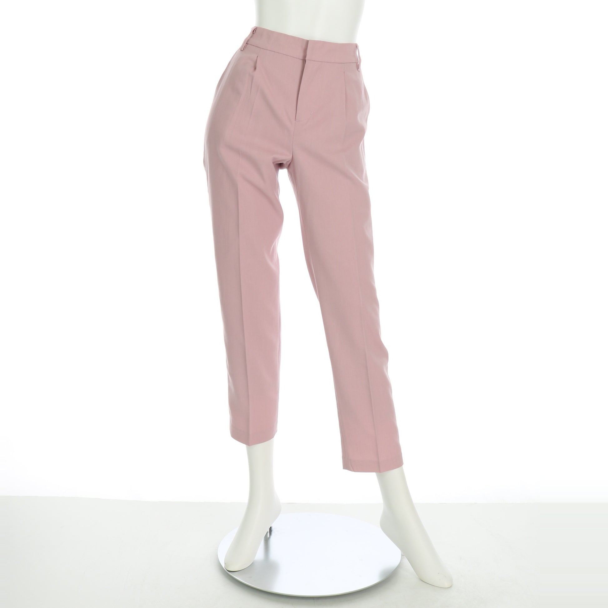 後ろゴムデザインの履きやすいシンプルなテーパードパンツ。Vネックブラウスとポインテッドトゥパンプスを合わせてスッキリ見えスタイルに、カットソーとスニーカーを合わせてカジュアルな着こなしもオススメです。