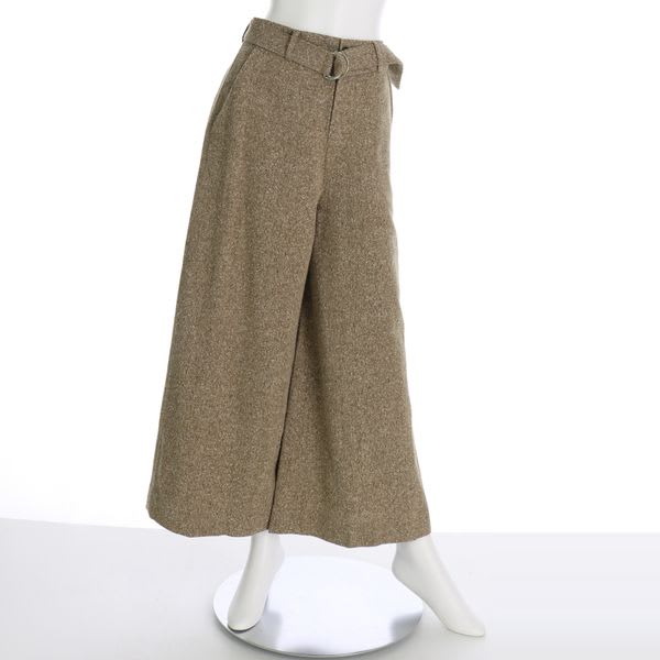 Dカンベルト付きのワイドパンツ。シャツブラウスでマニッシュに、コンパクトなシルエットのカットソーを合わせてすっきりと着こなしても素敵です。