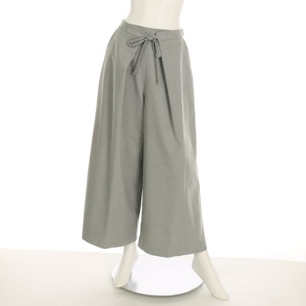 デザイン性のあるフロントリボンのパンツ。Vネックカットソーを合わせてクールな印象のスタイルに、ゆったりニットを合わせてリラックススタイルもいいですね♪