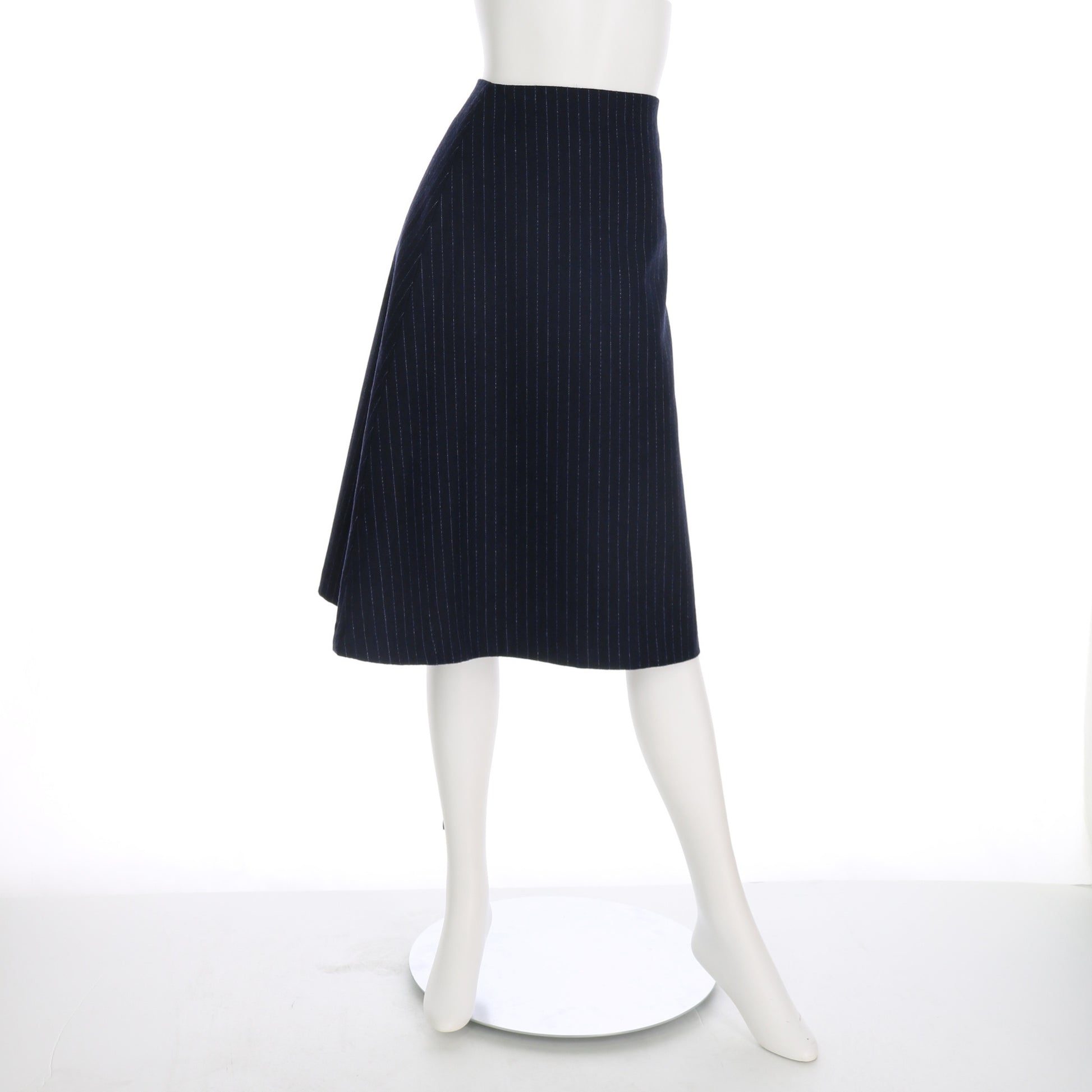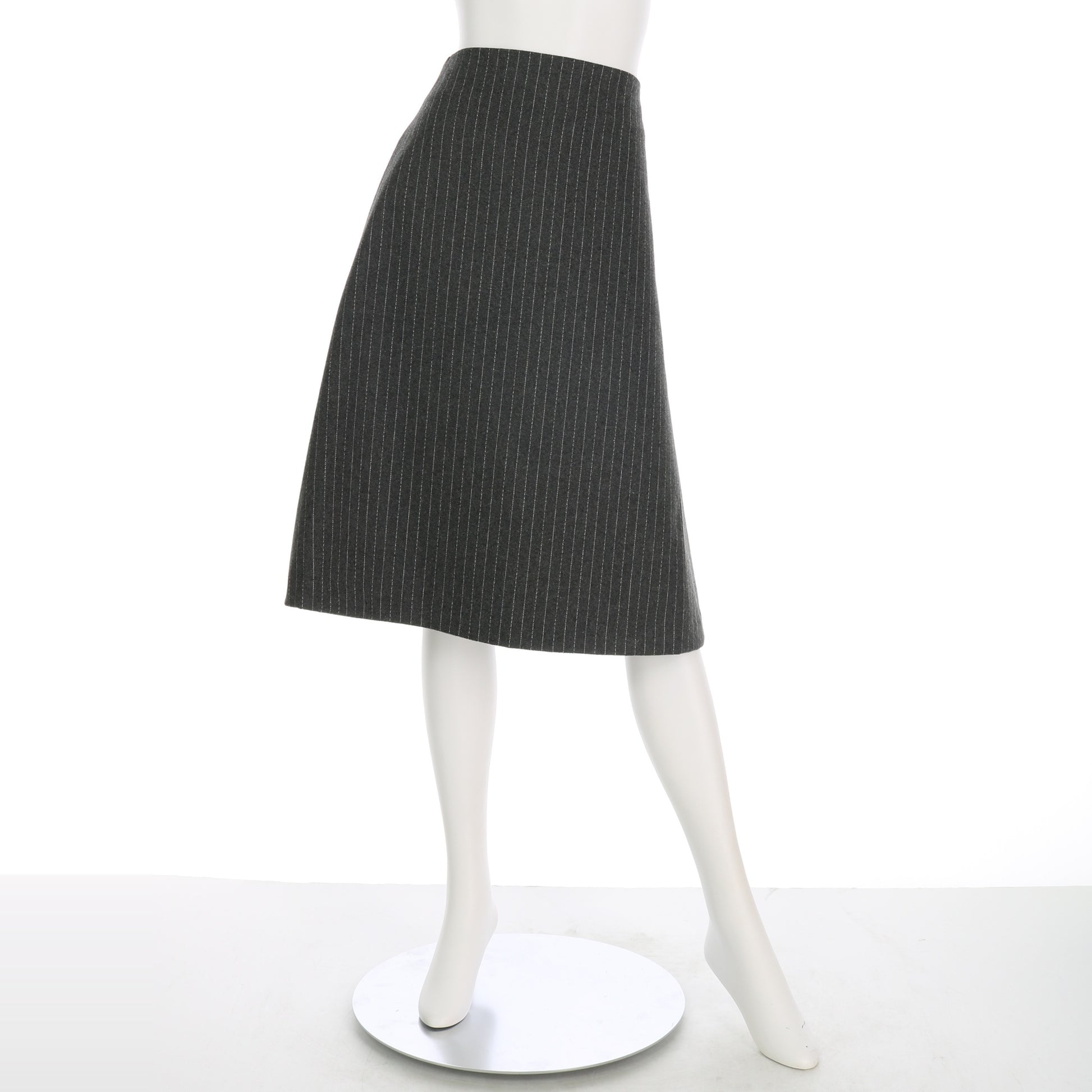 ストライプ柄のフレアスカート。ベーシックカラーのニットを合わせてシックに、トレンドカラーのニットを合わせてキレイめな着こなしもおすすめです。