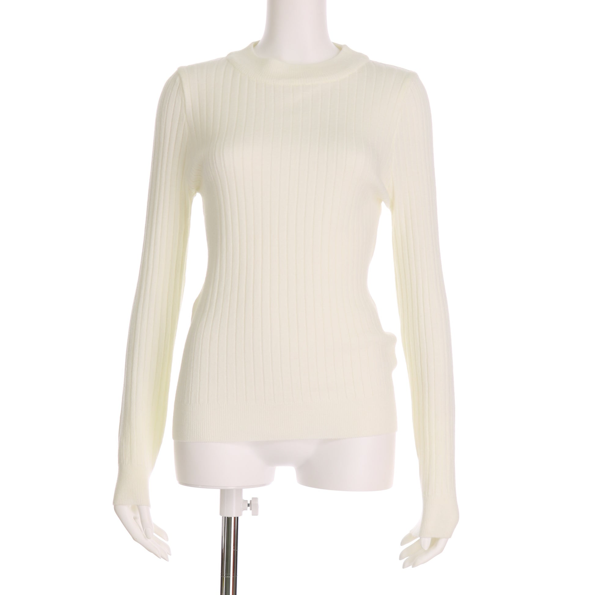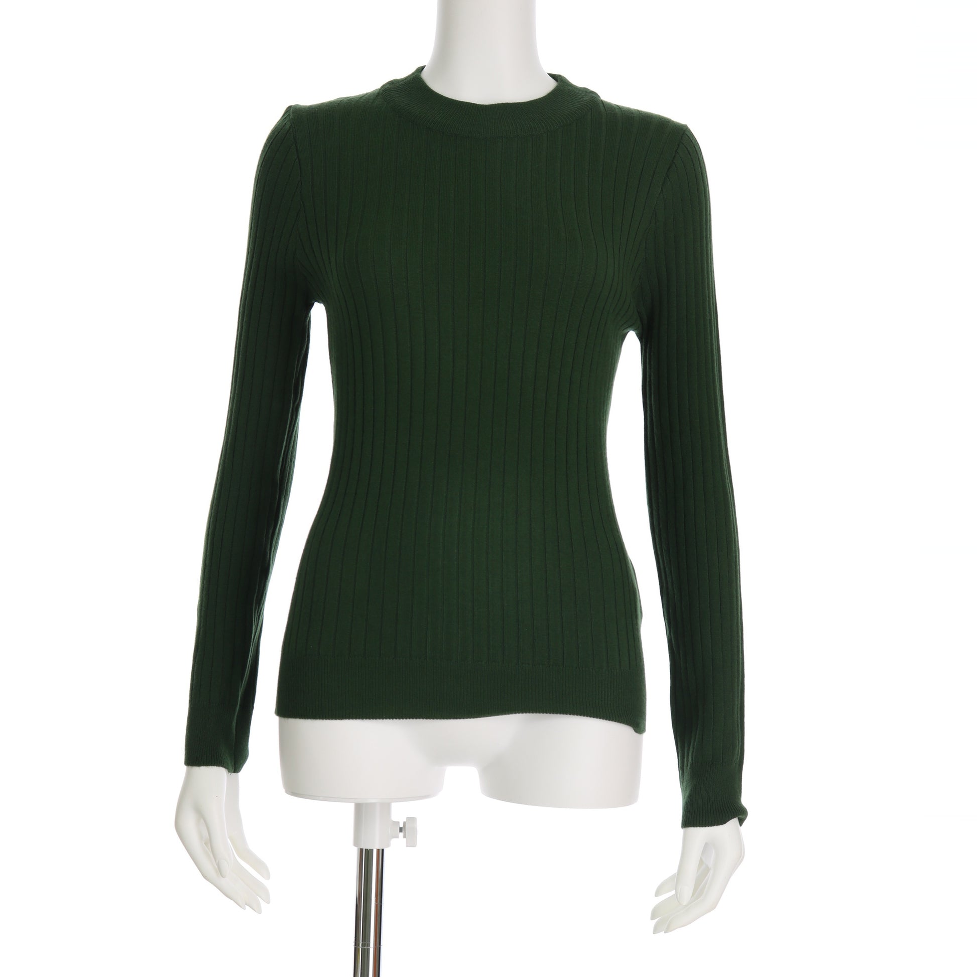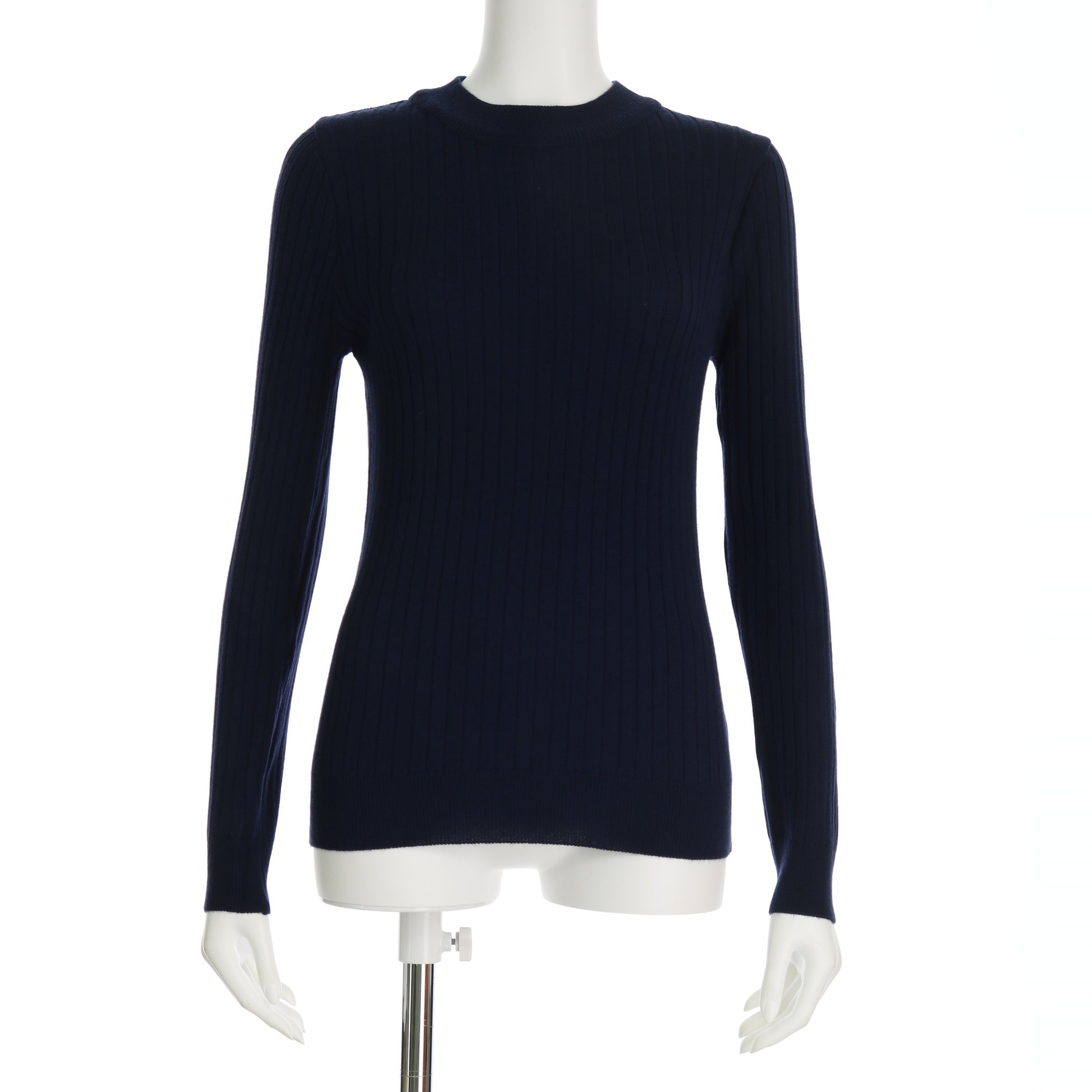 クルーネックのリブニットプルオーバー。テーパードパンツに合わせてすっきりと着こなしたり、台形スカートに合わせてオフィスカジュアルにまとめるのもいいですね。ジャケットのインナーとしても活用できますよ。
