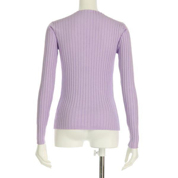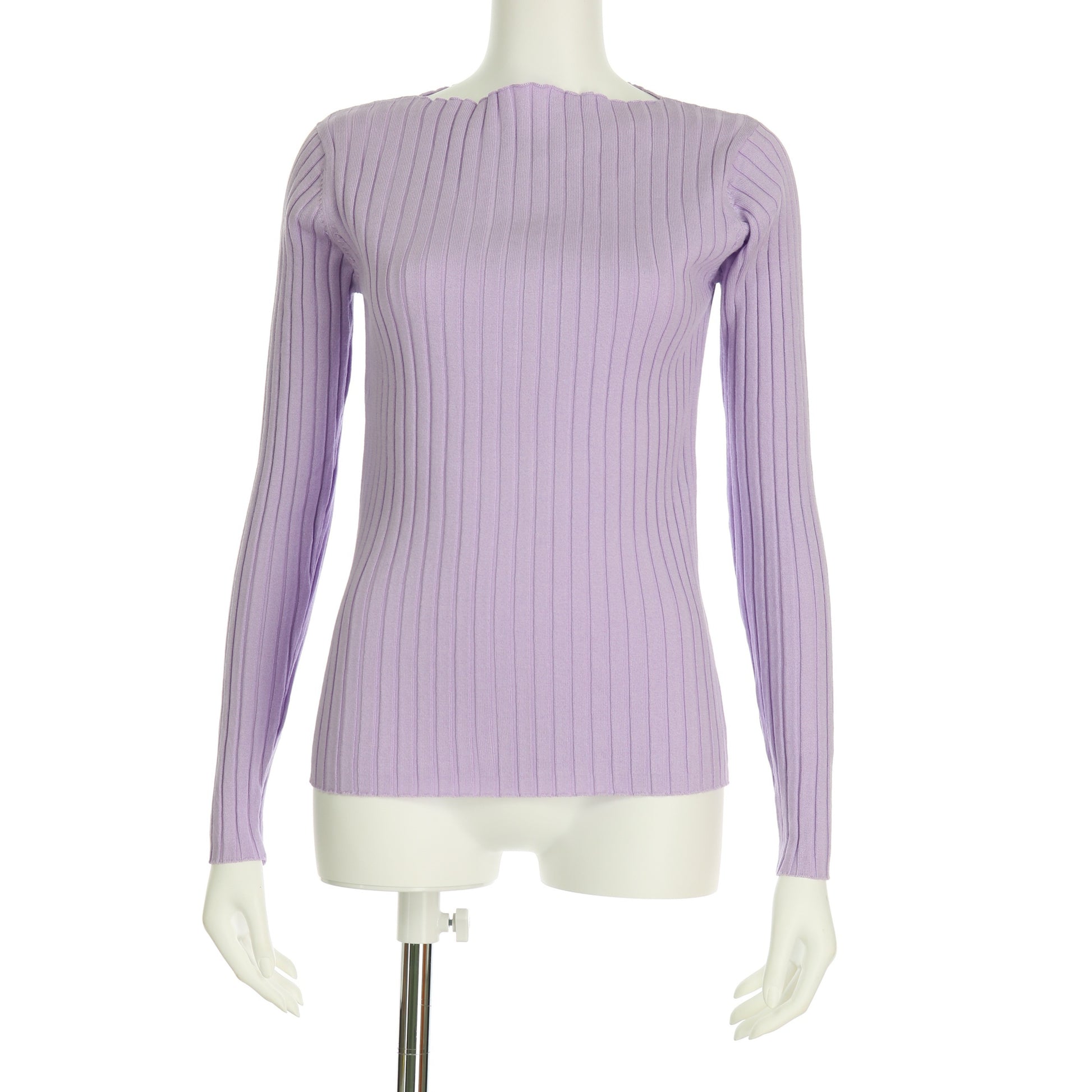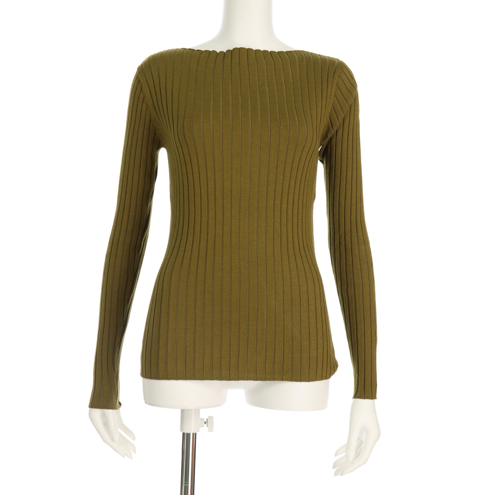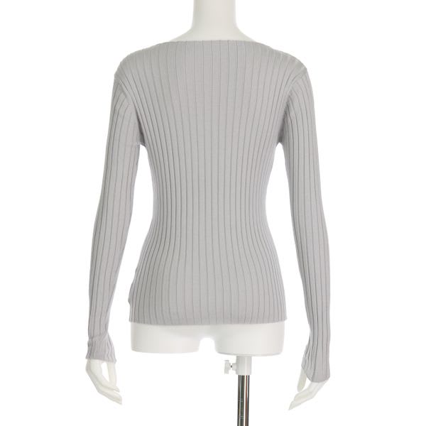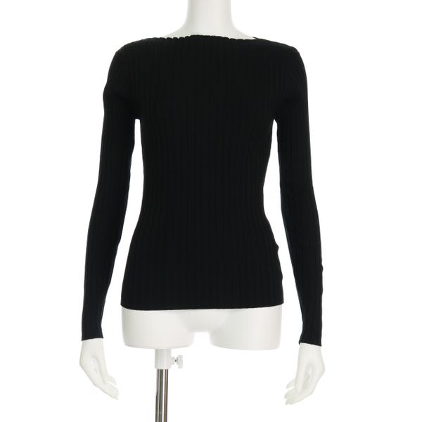 スラッシュドネックのリブニットプルオーバー。フレアスカートを合わせてレディライクに、ワイドパンツとフラットシューズを合わせてカジュアルスタイルにも♪