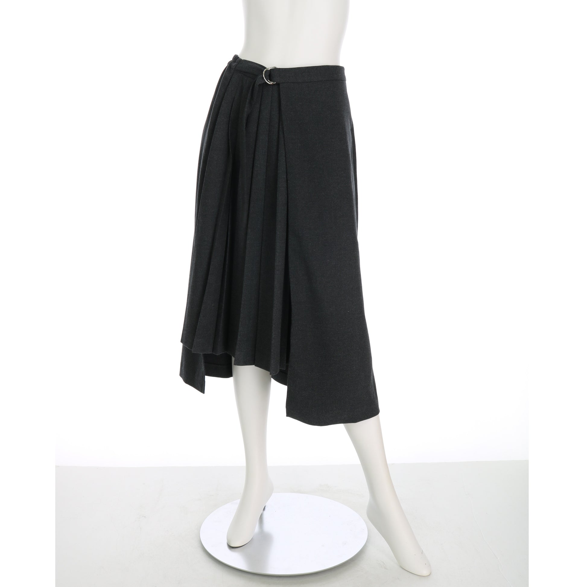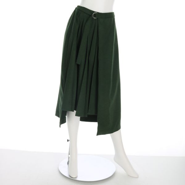 プリーツがポイントのベルト付きフレアスカート。タートルネックニットを合わせてシックで落ち着いたスタイルに仕上げたり、とろみブラウスを合わせて上品なエレガントスタイルに仕上げたりと、色々なスタイルが完成しますね。
