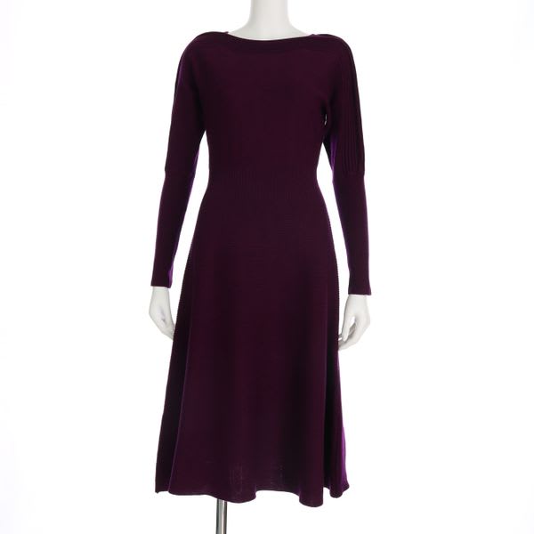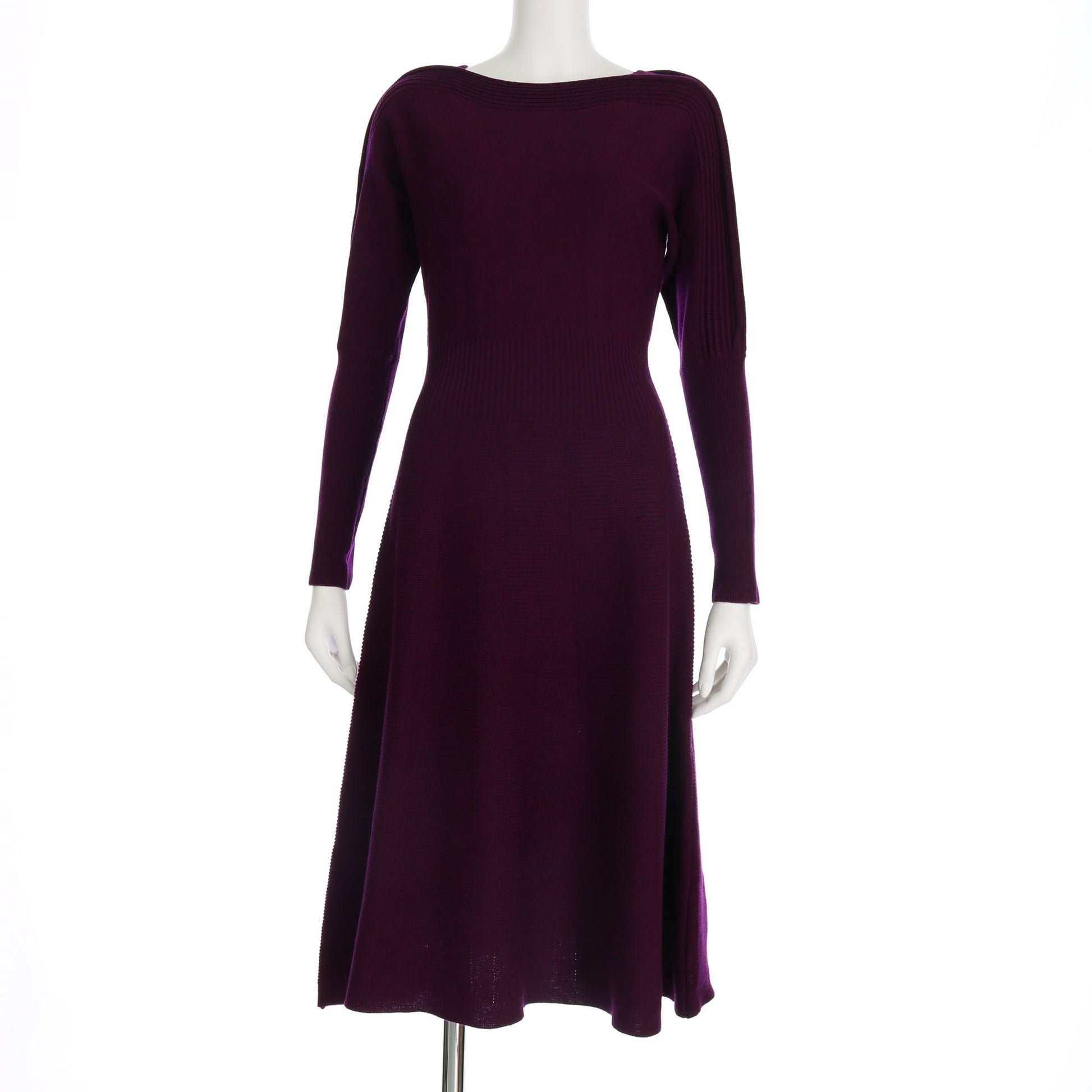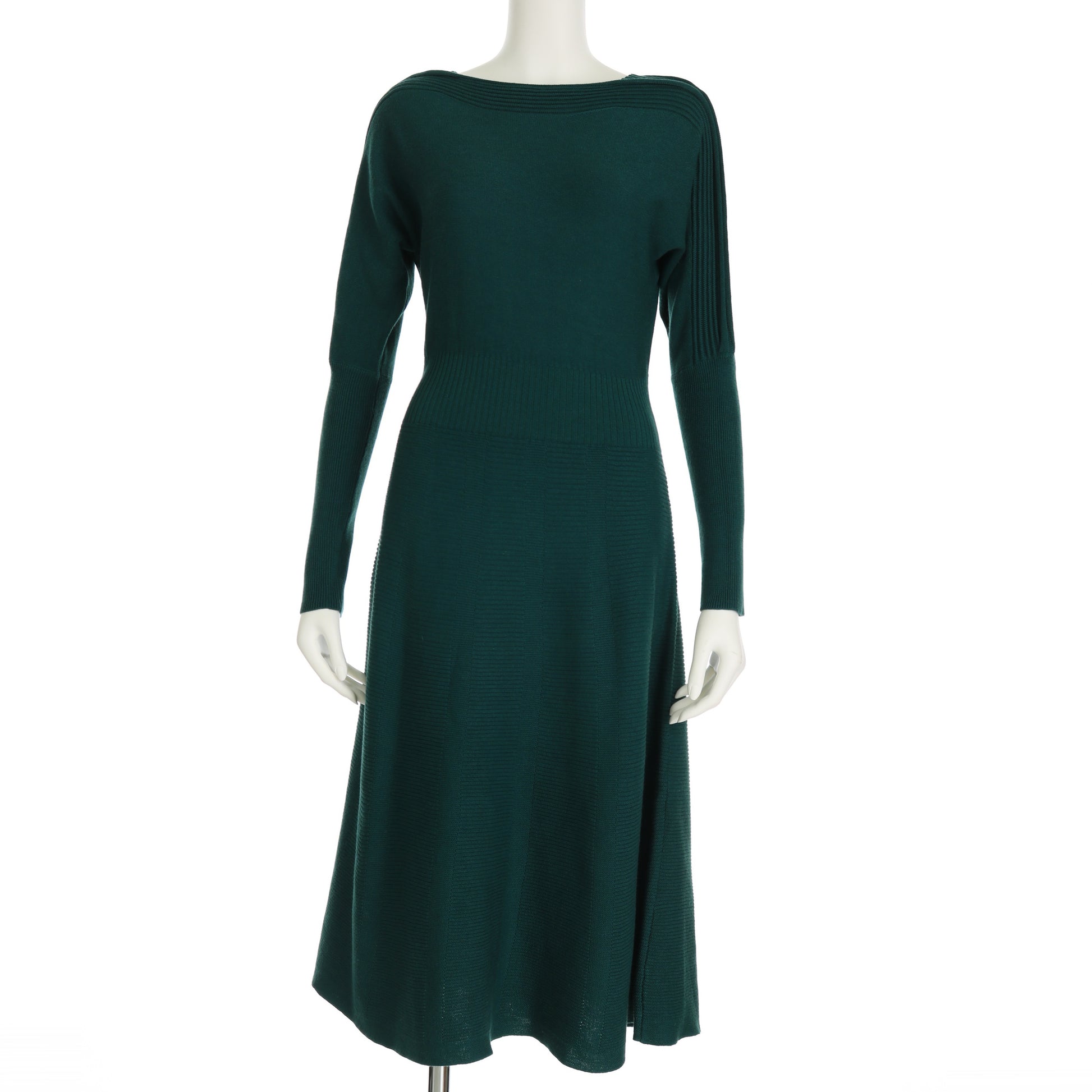 ネックラインと袖のリブが特徴的なワンピース。ロングネックレスとヒールパンプスを合わせてエレガントに、ストールとショートブーツを合わせてラフに着こなすのも素敵です!