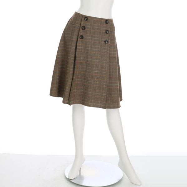 フロントボタンデザインのチェック柄スカート。フレア袖のブラウスを合わせてキレイめに仕上げたり、ボウタイブラウスをインしてかっちりと仕上げたりと、色々なスタイルが楽しめます!