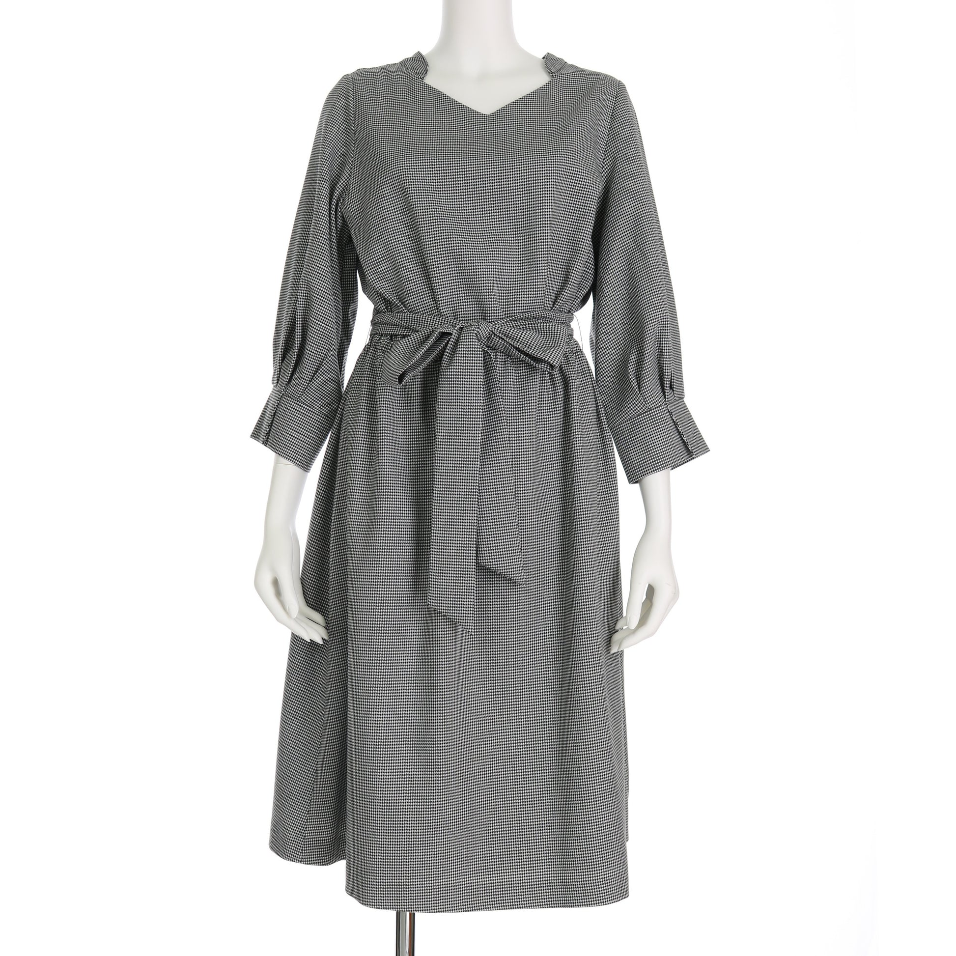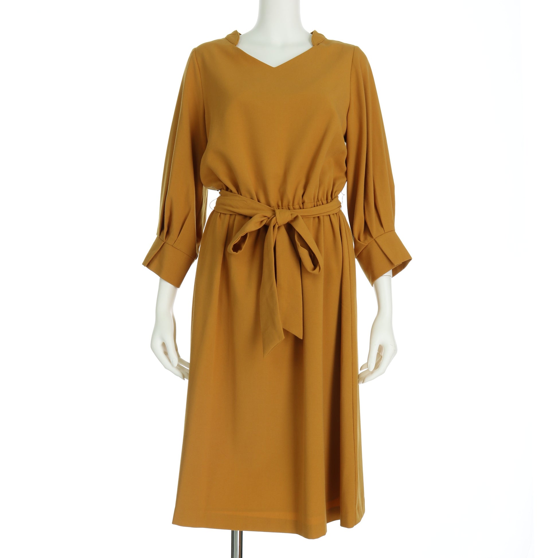 共布リボンベルト付きワンピース。デザイン性のあるVネックやカフス風のお袖がポイントです。ヒールパンプスを合わせてきれいめに、ショートブーツを合わせてレディライクな着こなしにも♪