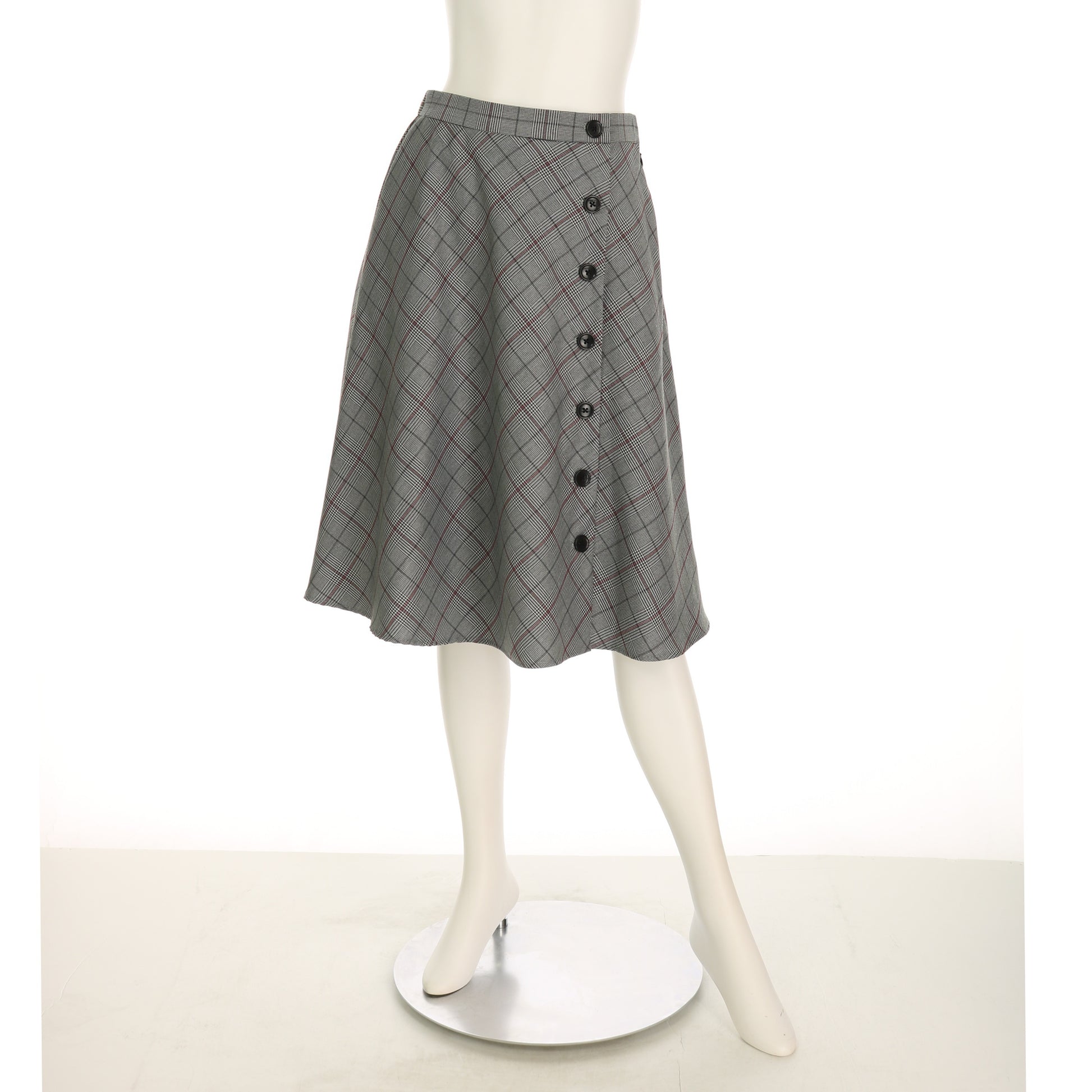 フロントボタンチェック柄フレアスカート