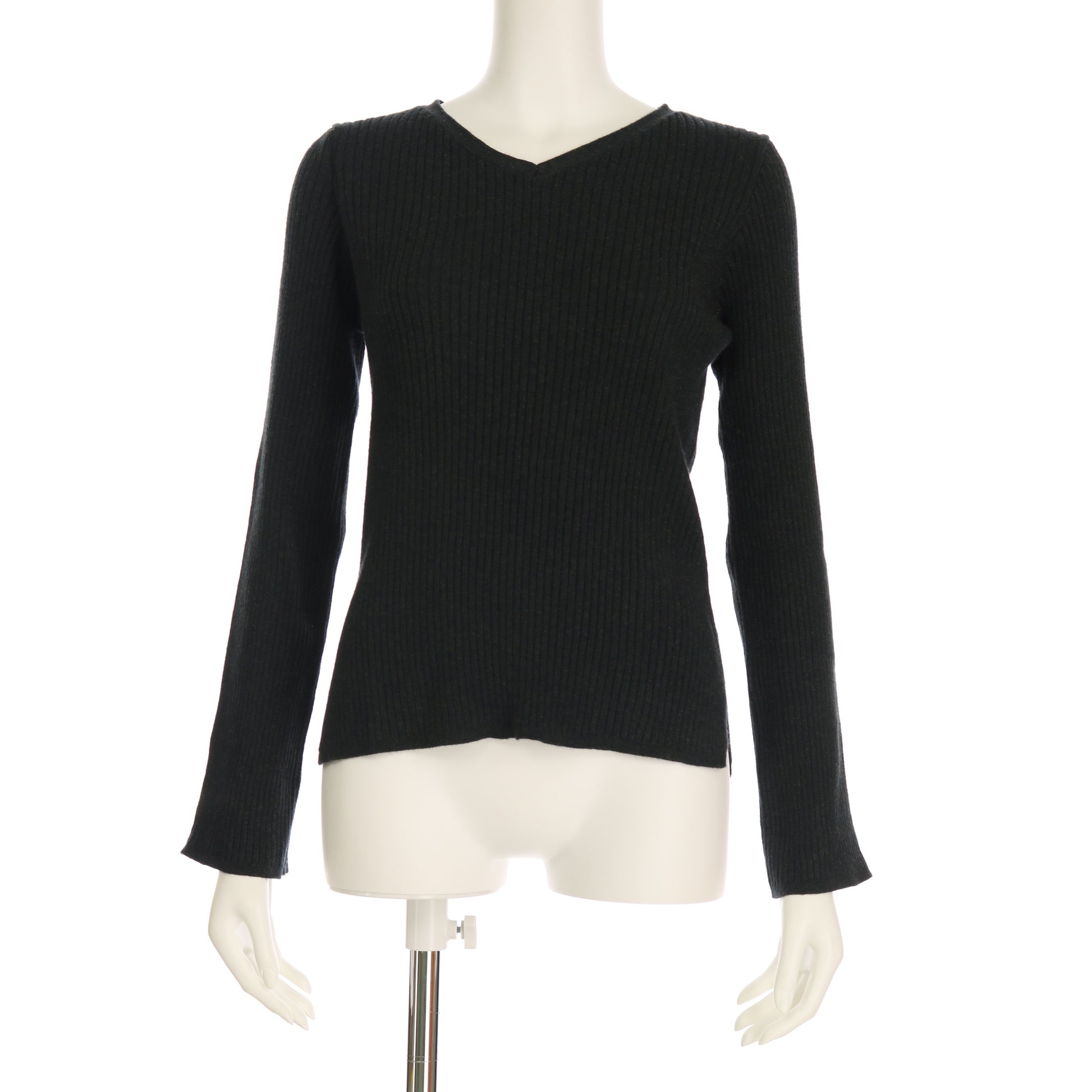 Vネックのワイドスリーブニットは、ラメやミックス糸のリブ編みがポイントのアイテムです。フレアスカートを合わせて大人フェミニンな着こなしに、テーパードパンツを合わせてきれいめカジュアルな着こなしも◎ですね。