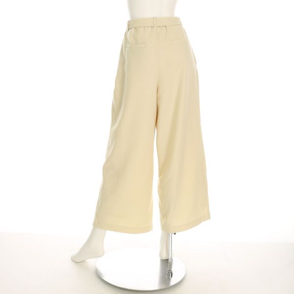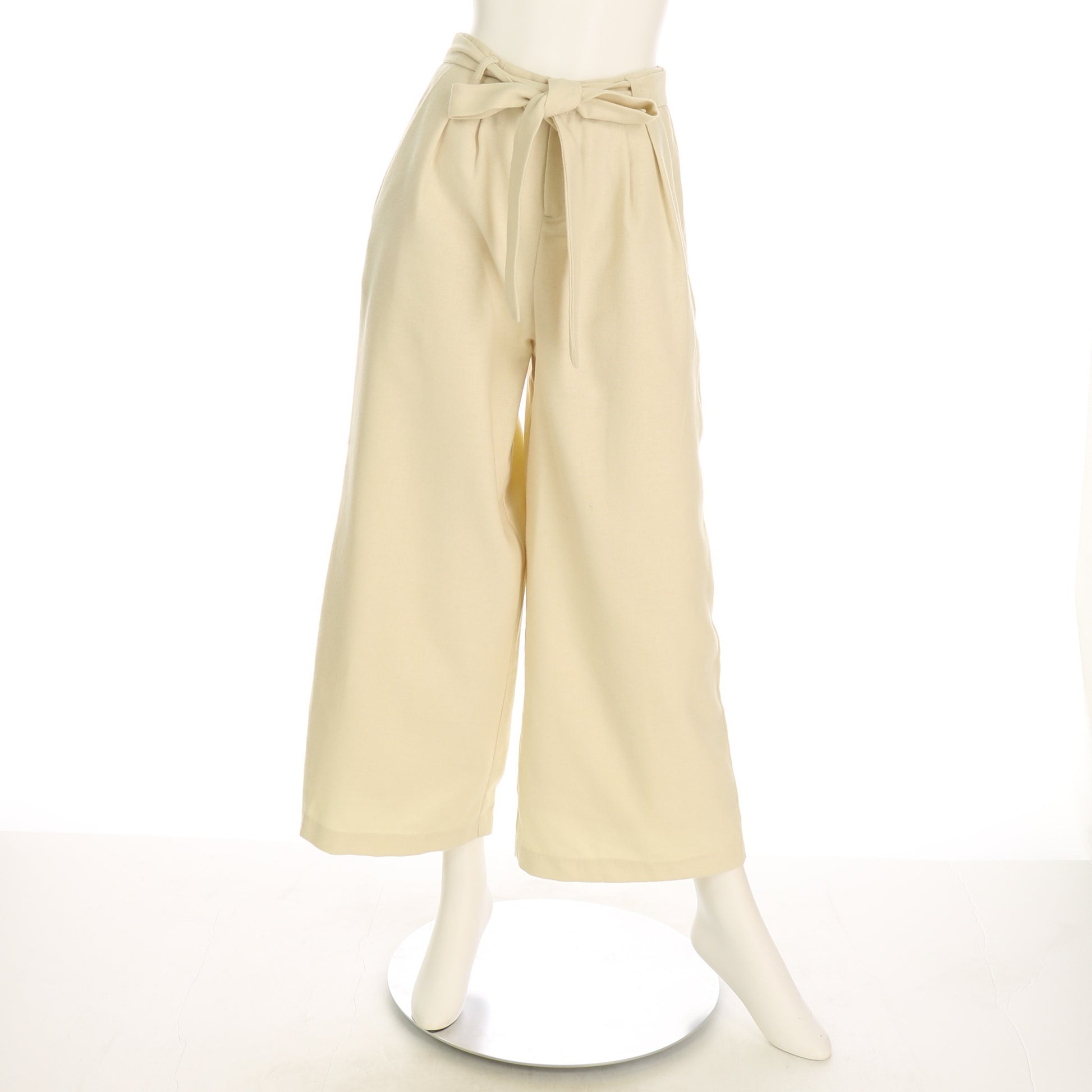 ウエストリボンベルト付きワイドパンツ。ハイゲージニットとチェスターコートを合わせてオフィスカジュアルに、オフタートルニットとライダースを合わせて辛口なスタイルも素敵ですよ♪