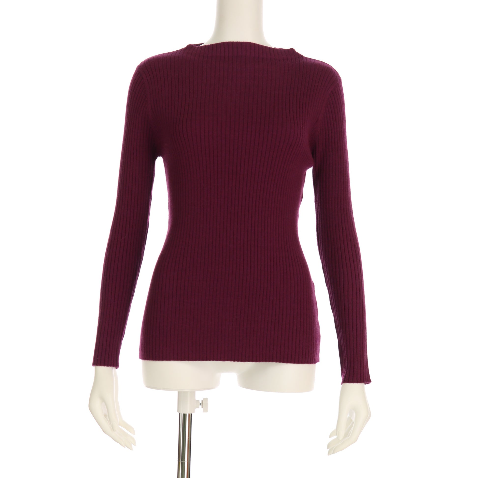 オフネックのリブニットプルオーバー。ロングプリーツスカートを合わせてリラックススタイルに、テーパードパンツを合わせてスマートに着こなすのも♪