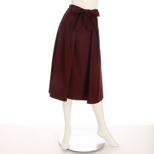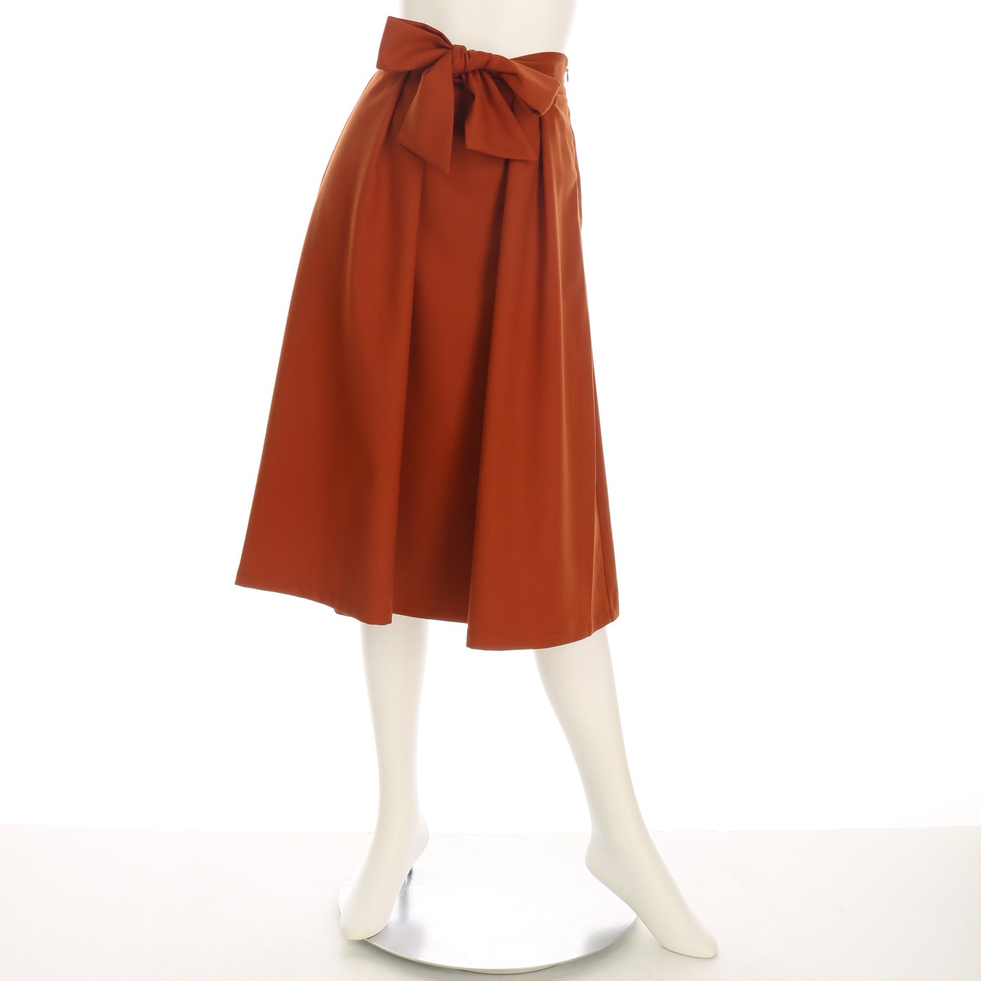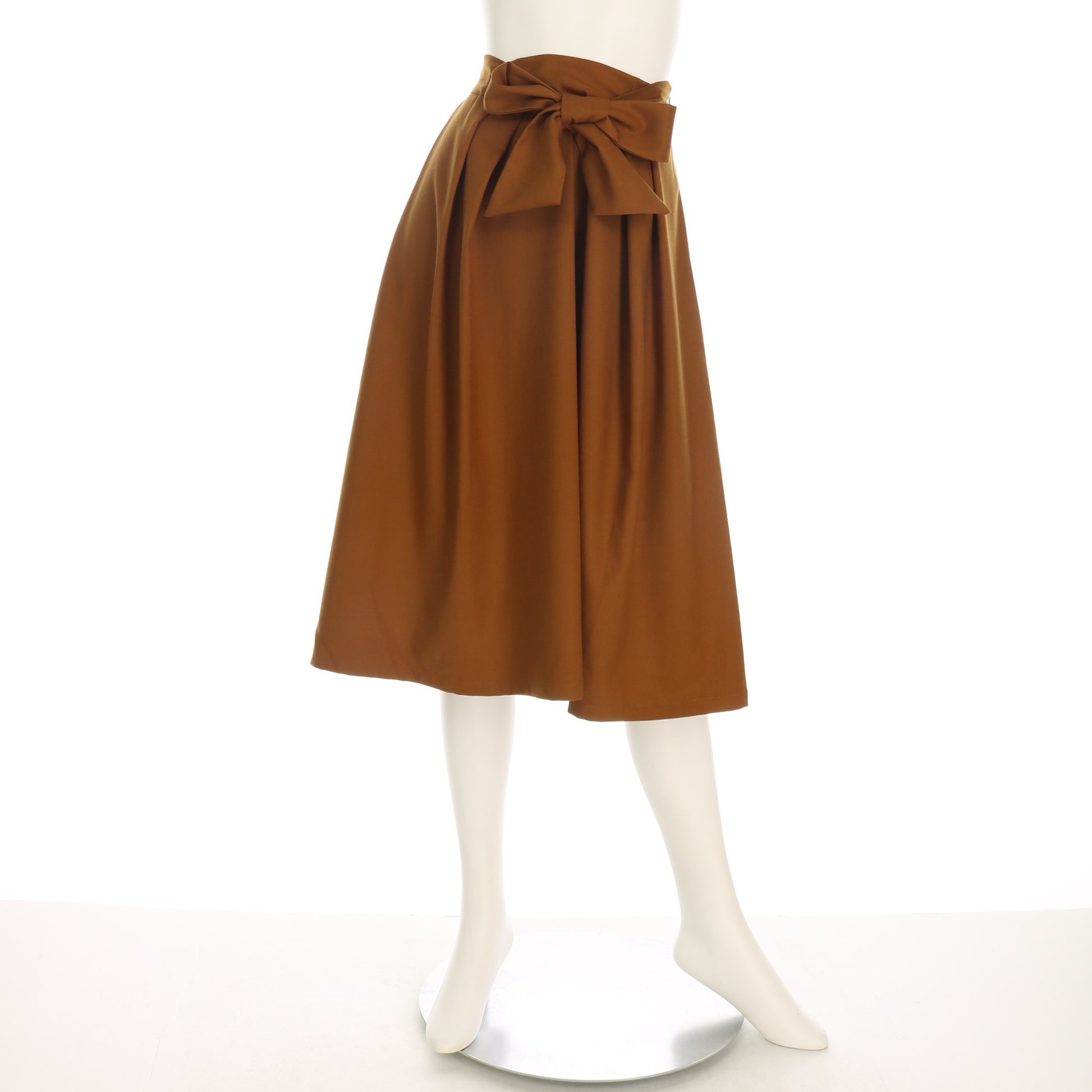 ウエストリボンがポイントのタック入りフレアスカート。とろみ感のあるブラウスとパンプスを合わせてフェミニンテイストに、タートルネックのニットとスニーカーを合わせてカジュアルに着こなすのも◎。