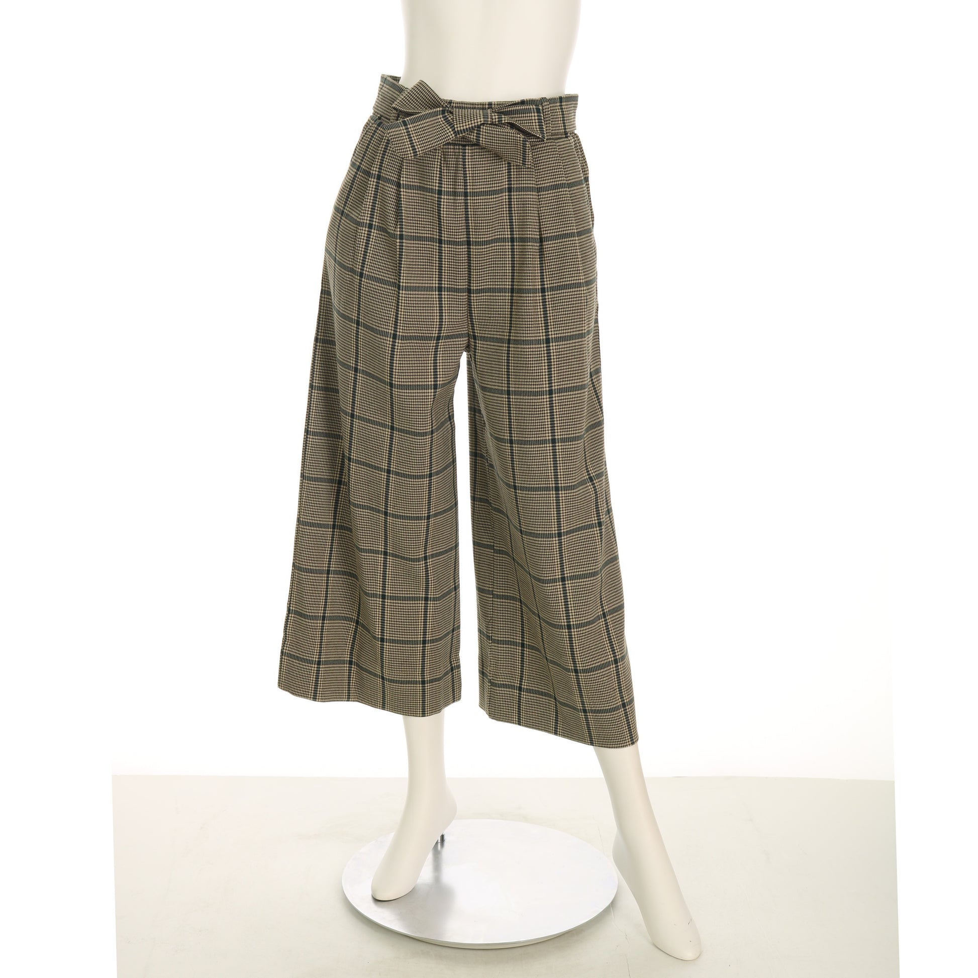 リボンベルト付きのチェック柄ワイドパンツ。ベルトはリボン結びや1回結んで垂らすのも◎。結び目を斜めの位置にずらすとこなれ感が出て素敵ですよ。フレア袖のブラウスにヒールパンプスを合わせてオフィスカジュアルに、オーバーサイズのニットを合わせてゆったりとした着こなしもいいですね!