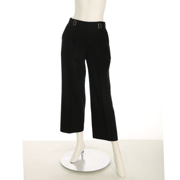 サイドバックルデザインのストレートパンツ。シンプルなカットソーを合わせてマニッシュな着こなしに、ベルスリーブニットを合わせて女性らしい着こなしも素敵ですよ。