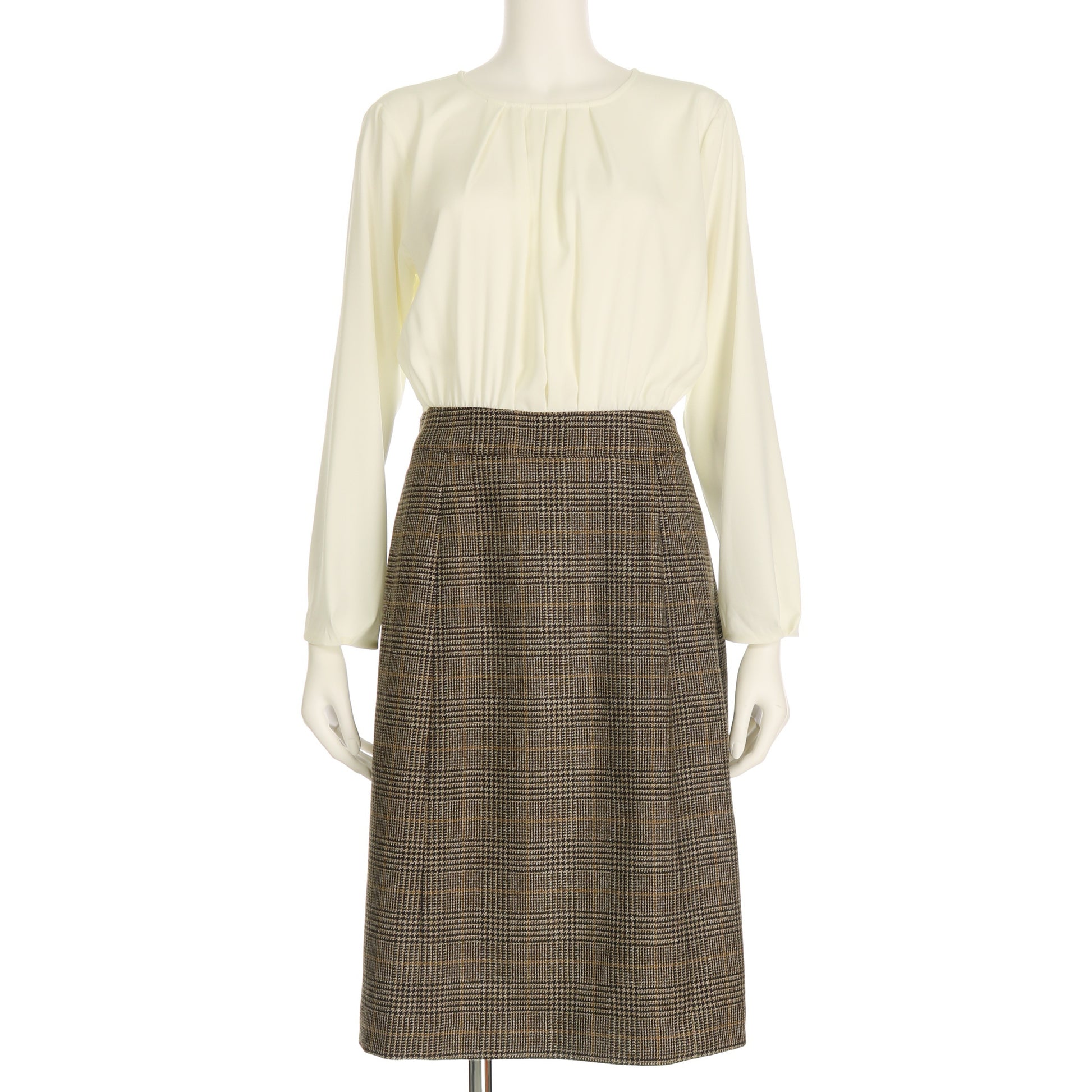 前後に入ったタックが動きを出してくれるドッキングワンピース。ボアコートと小ぶりのバッグを合わせて暖かみのあるカジュアルMIXスタイルに、チェスターコートとレザーバッグを合わせてオフィススタイルにしても◎です。