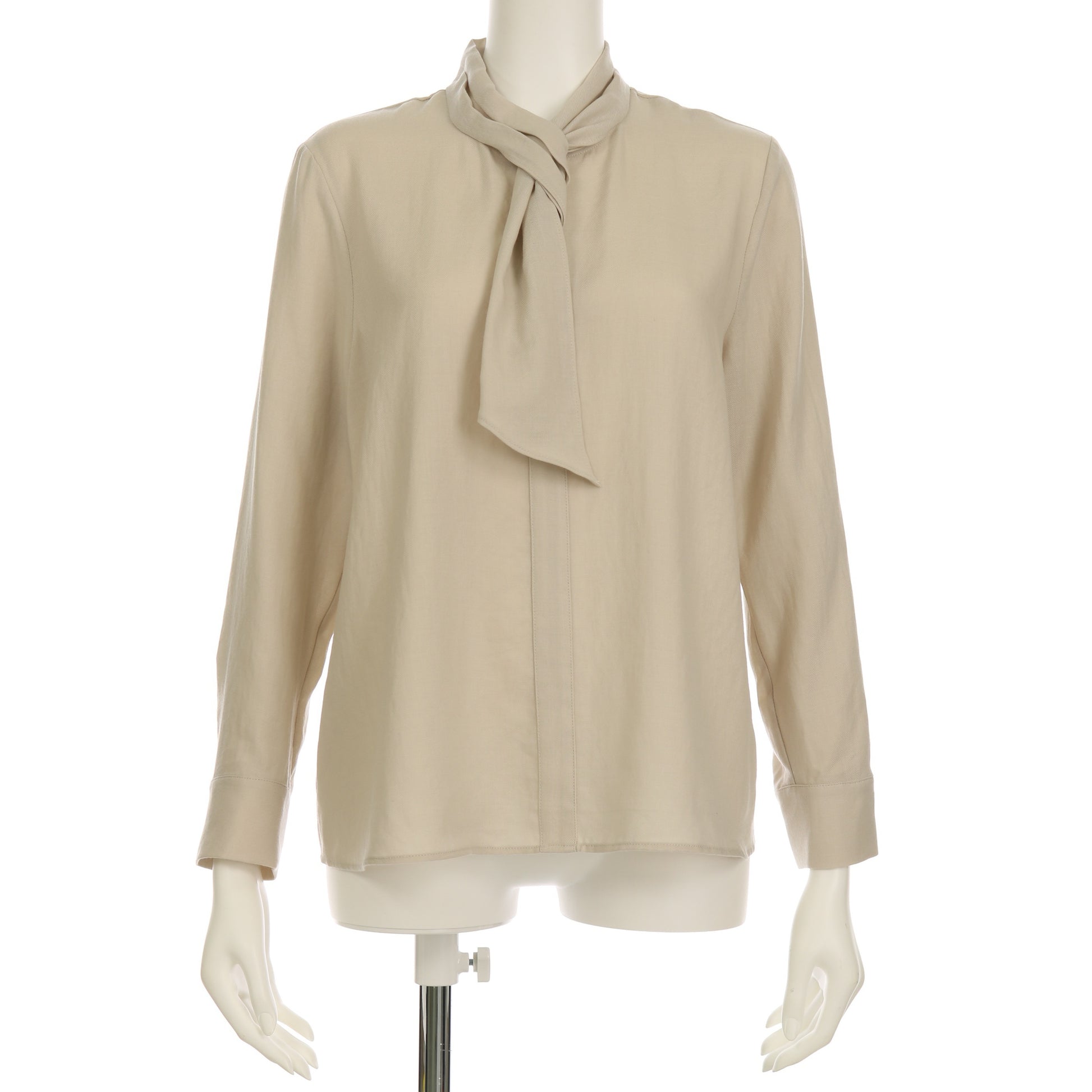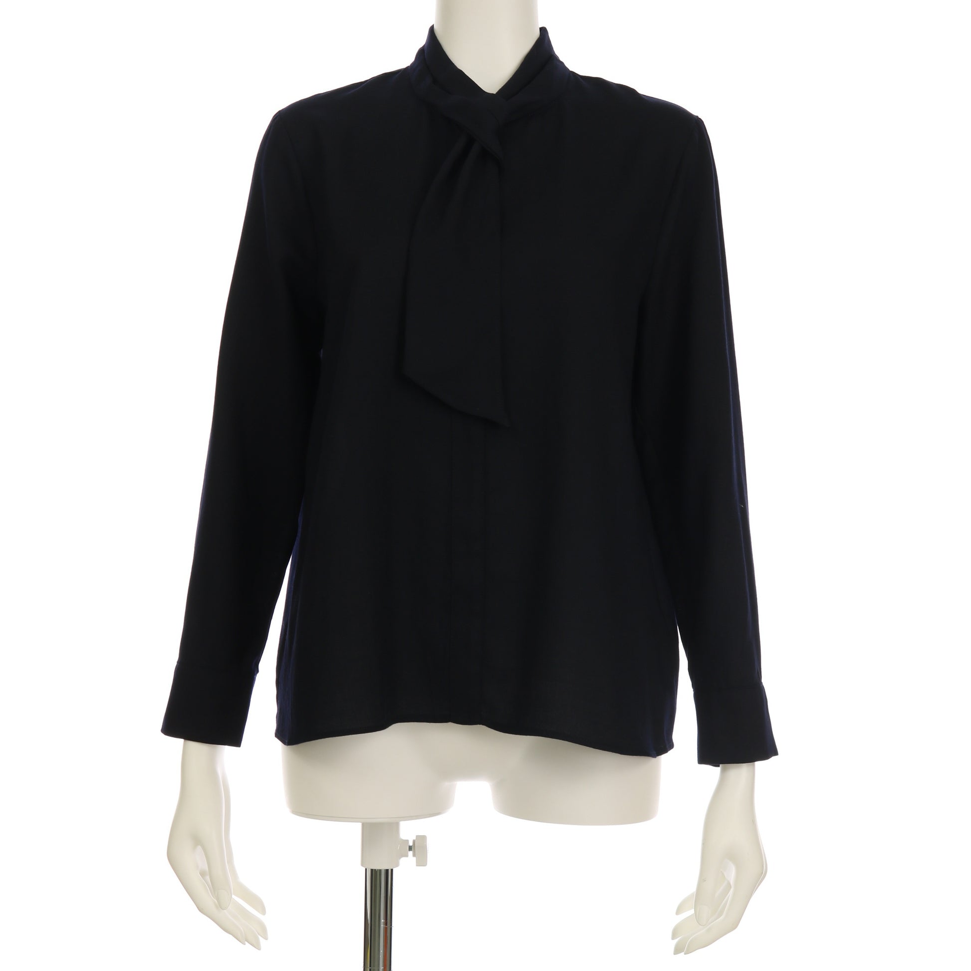 スカーフ風のボウタイがポイントのブラウス。テーパードパンツを合わせてお仕事用に、ラッフルスカートを合わせてエレガントな着こなしも素敵です。