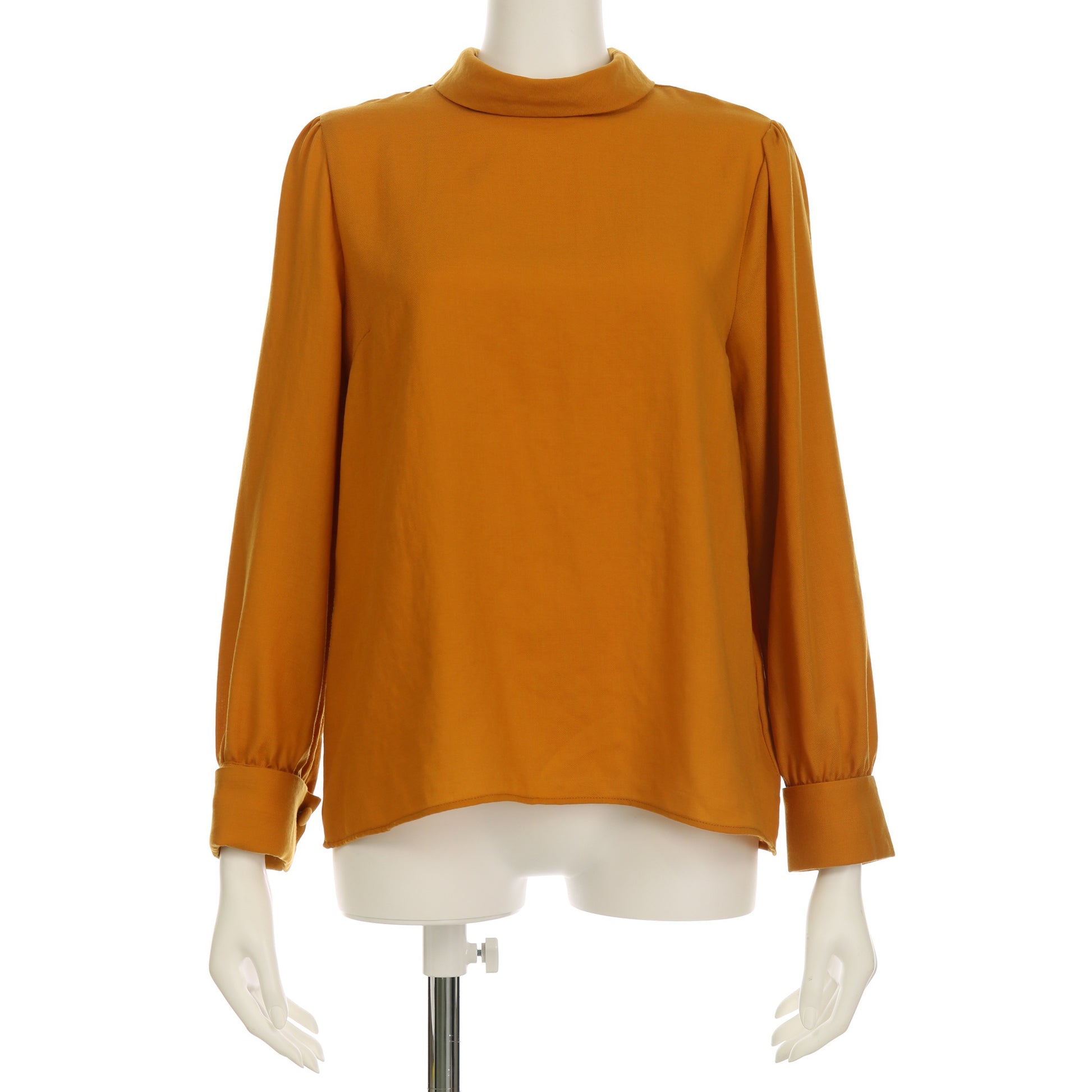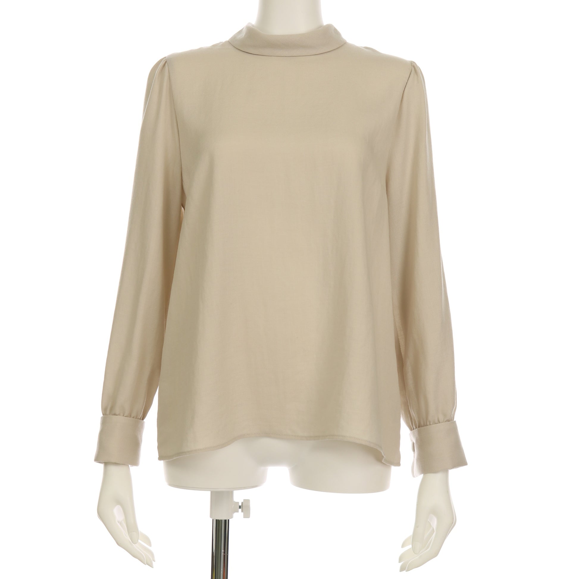 ターンナップカフスと襟付きのきちんと感があるスタンドカラーブラウス。センタープレスのあるパンツに合わせてオフィススタイルに、フレアスカートを合わせて上品に仕上げるのもいいですね。