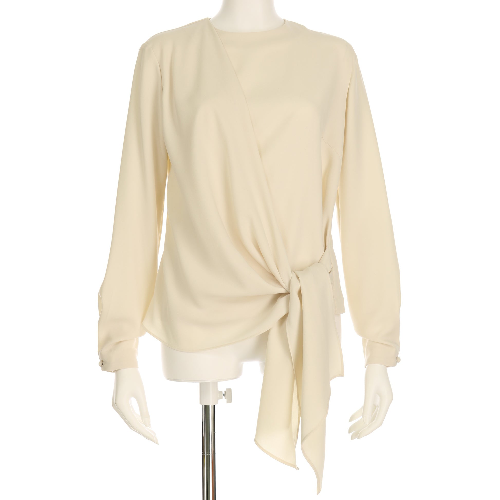 ドレープが美しいエレガントなカシュクール風ブラウス。サイドはラフに結ぶときれいなドレープに。ストレートパンツを合わせてクールに、タイトスカートを合わせてレディライクな着こなしもいいですね!