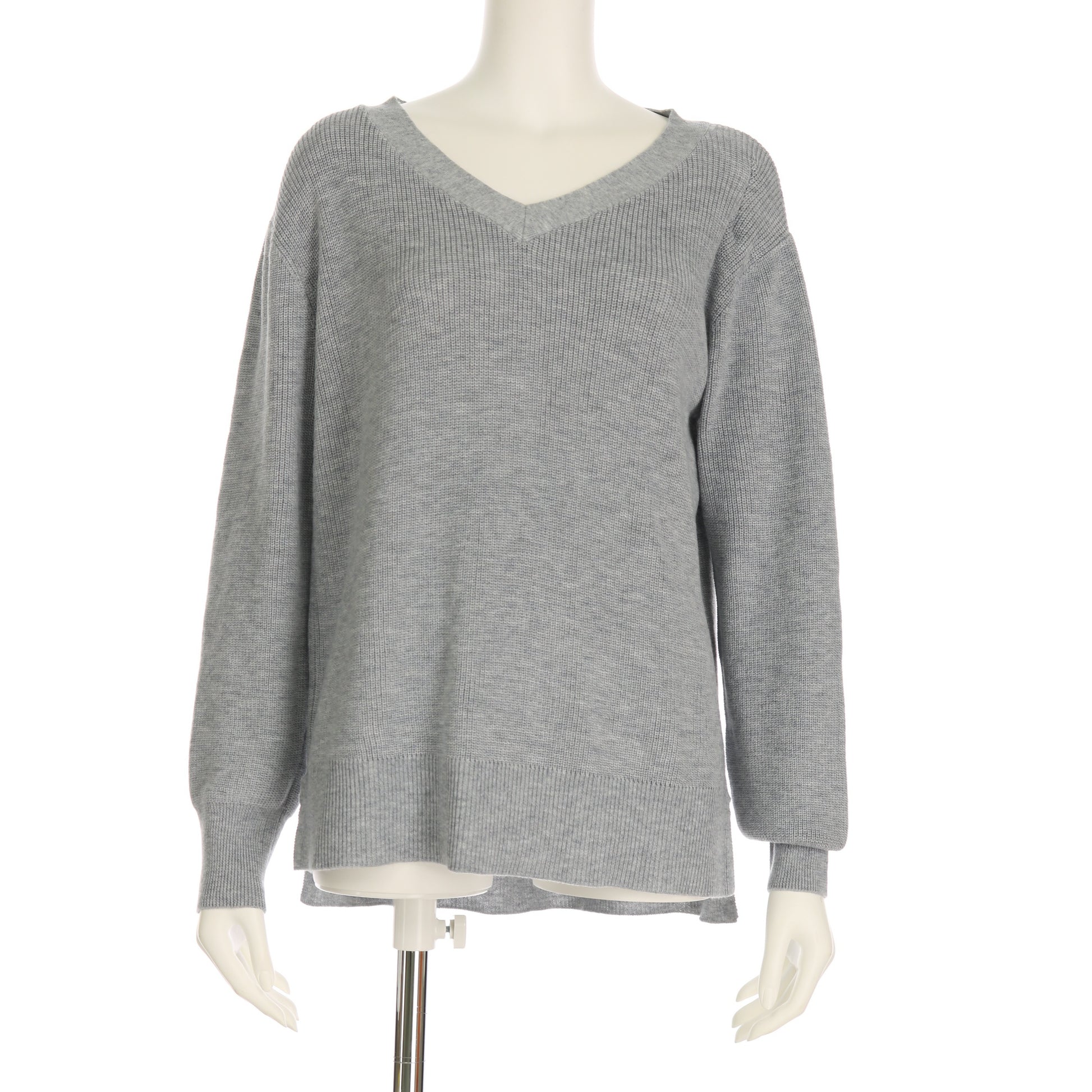 ゆったりとしたシルエットのVネックニット。ワイドパンツとブーティを合わせて綺麗めカジュアルに、フレアスカートとヒールパンプスを合わせて女性らしさを出すのも◎。