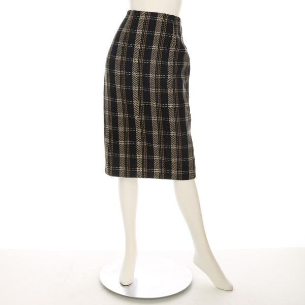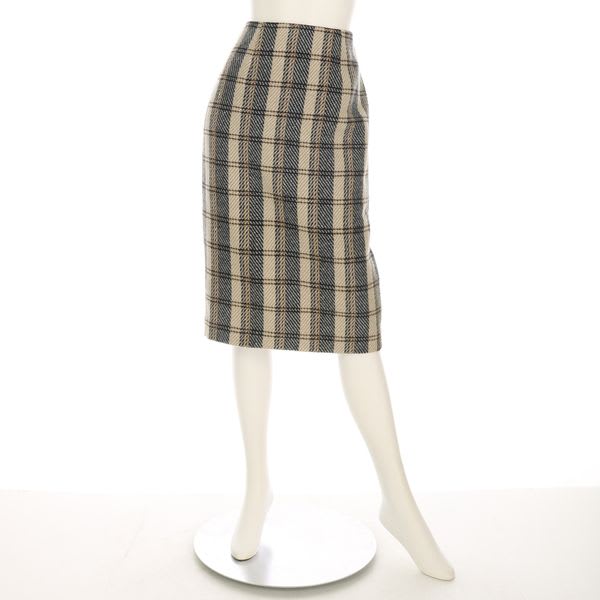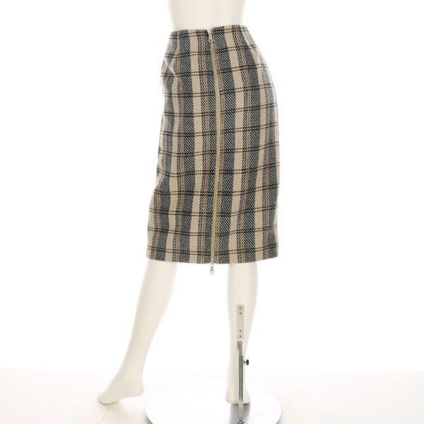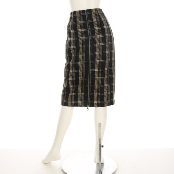 バックジップのチェック柄タイトスカート。ジップの開閉でスリットの深さを調整してお楽しみいただけます!