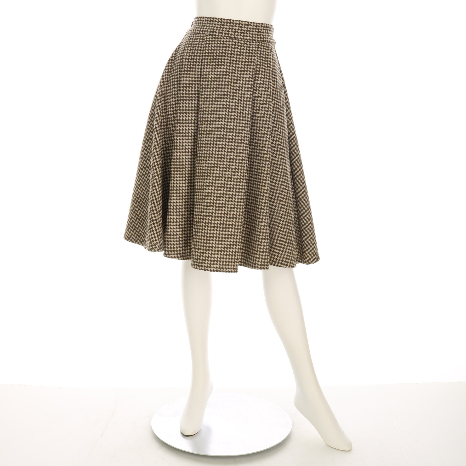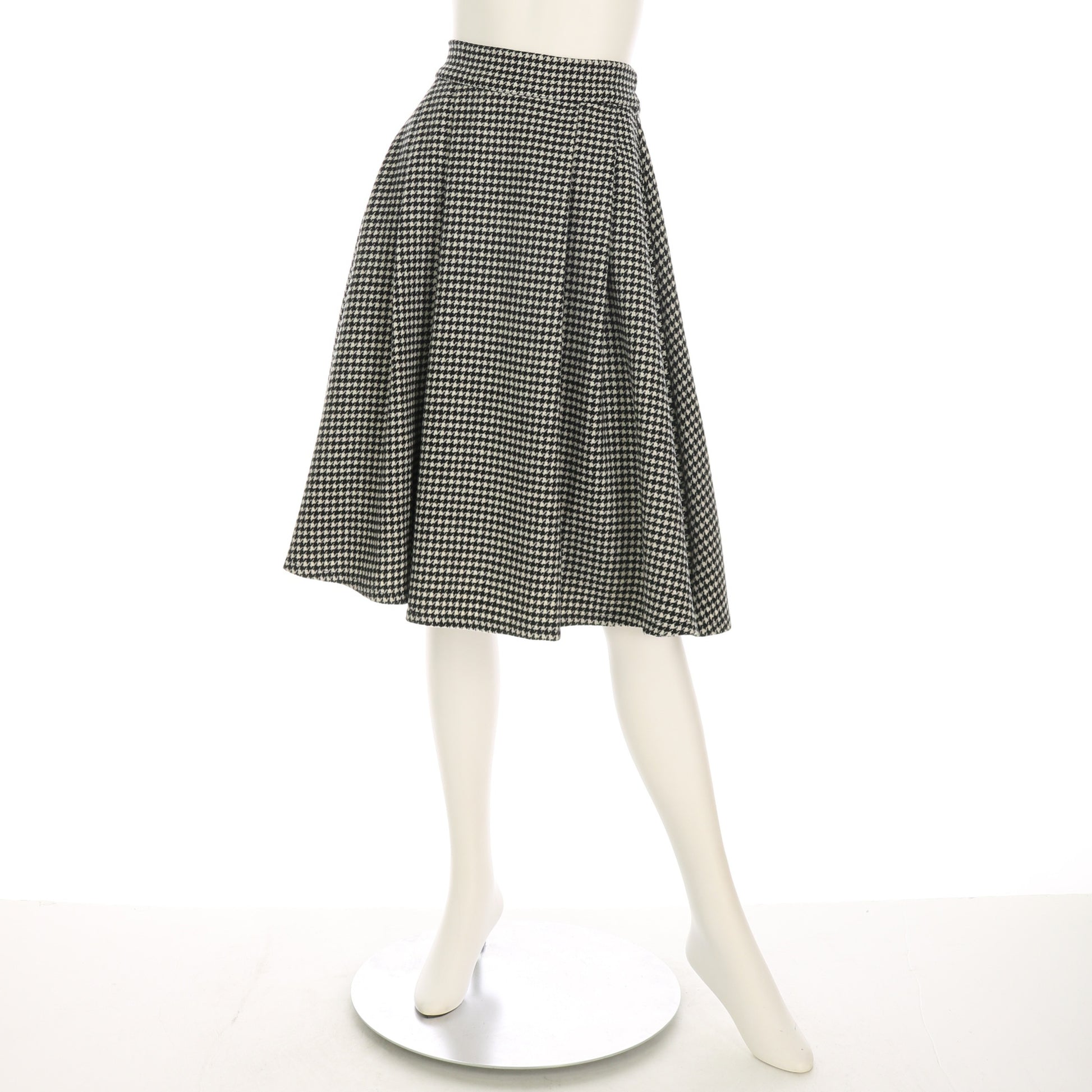 千鳥柄のタック入りフレアスカート。スタンドカラーのブラウスとヒールパンプスを合わせてオフィスカジュアルに、シャギーニットとブーティを合わせてフェミニンスタイルも◎。