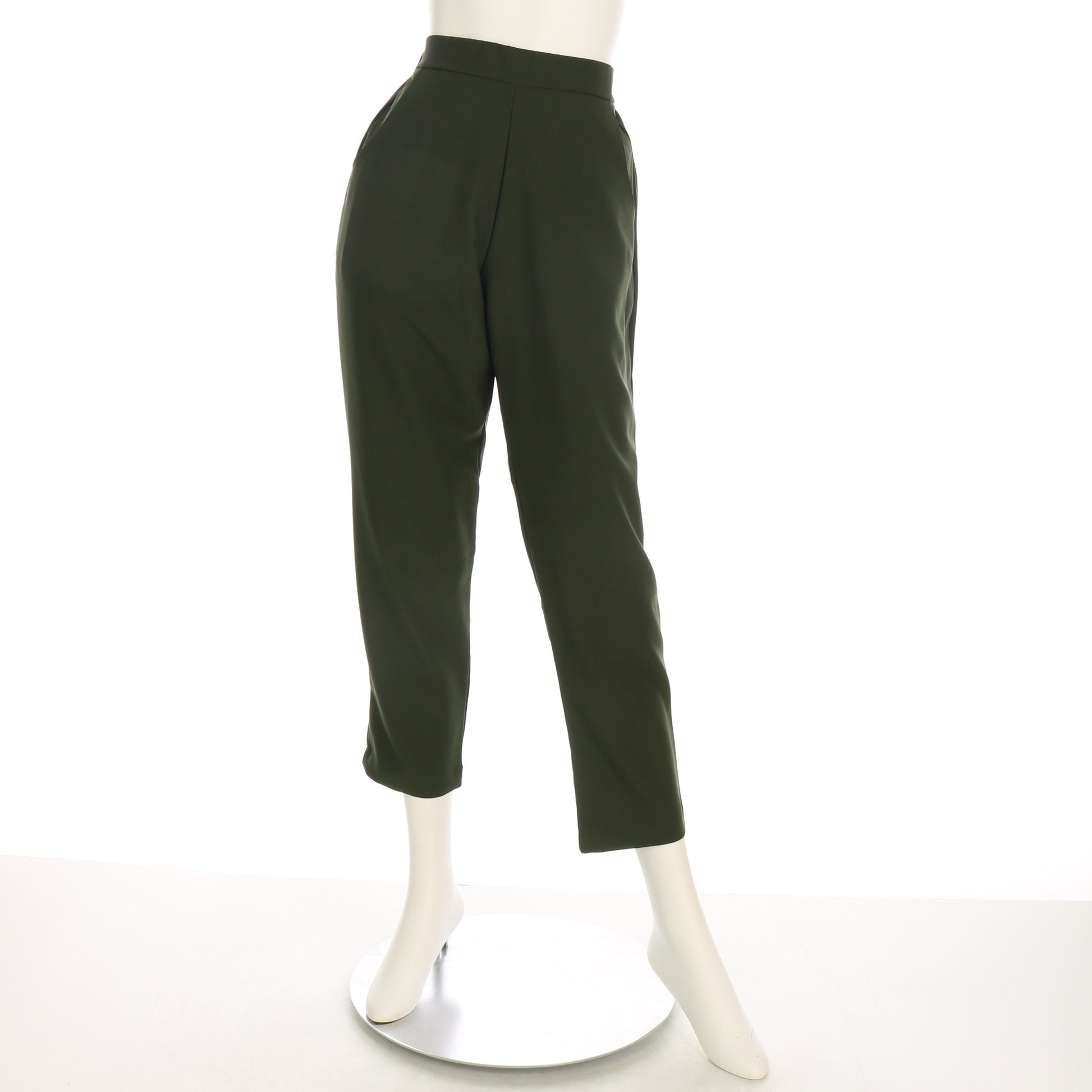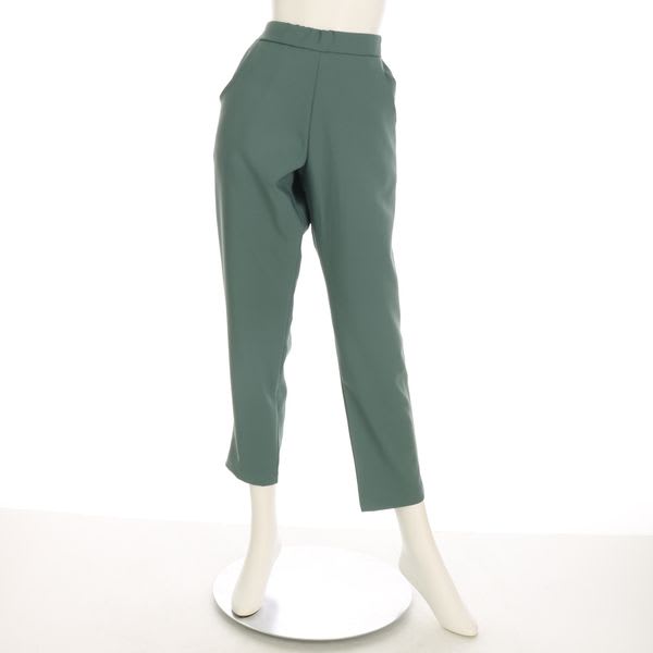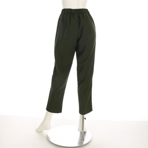 後ろゴムの履きやすいテーパードパンツ。襟付きシャツとVネックニットを合わせて真面目な印象のスタイルに、ケーブル編みニットを合わせてカジュアルスタイルもいいですね!(ポケット有り)