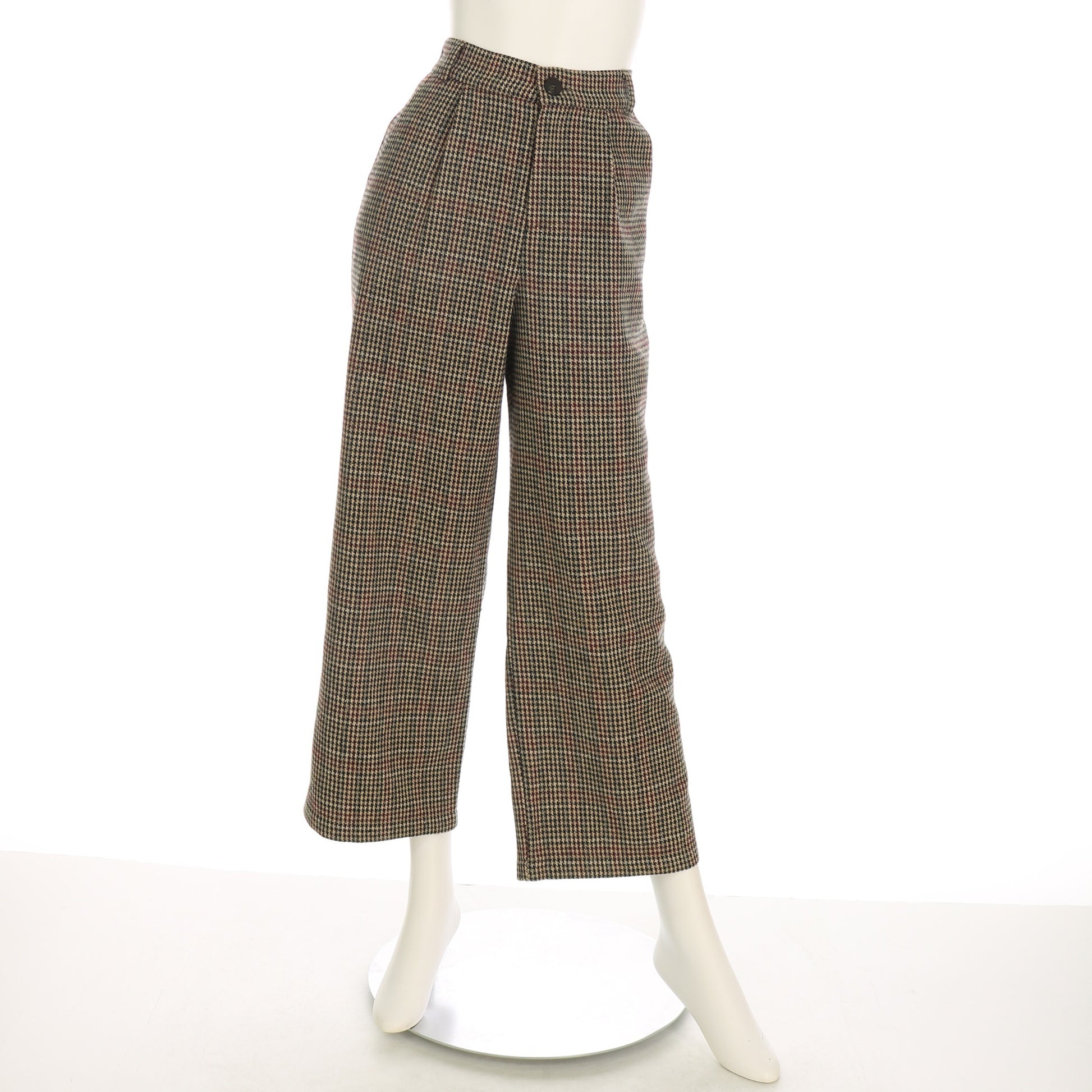 ガンクラブチェック柄のワイドパンツ。ボトルネックのハイゲージニットを合わせてマニッシュに、スタンドカラーのブラウスを合わせてお仕事スタイルも素敵ですよ!