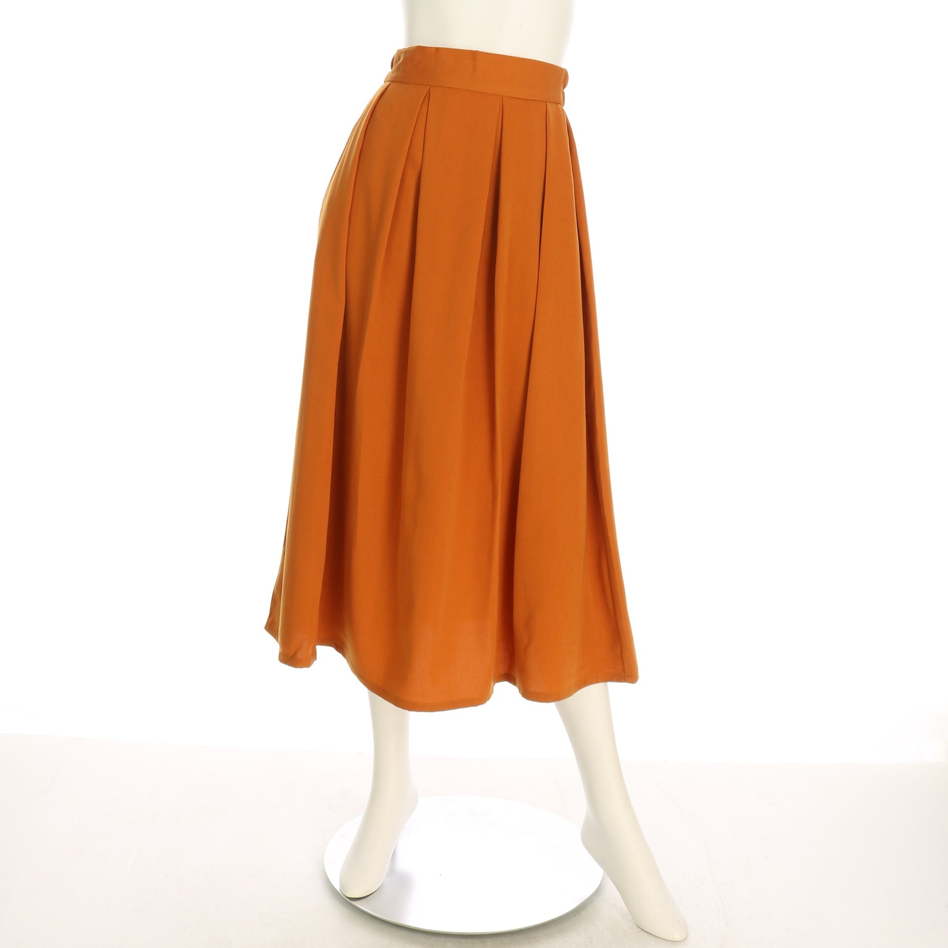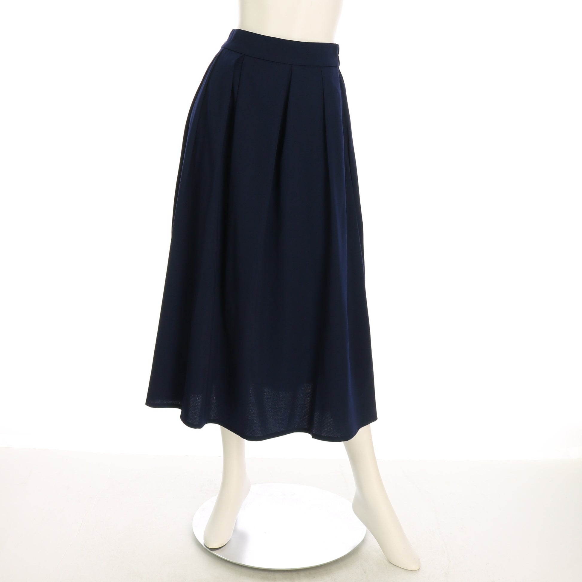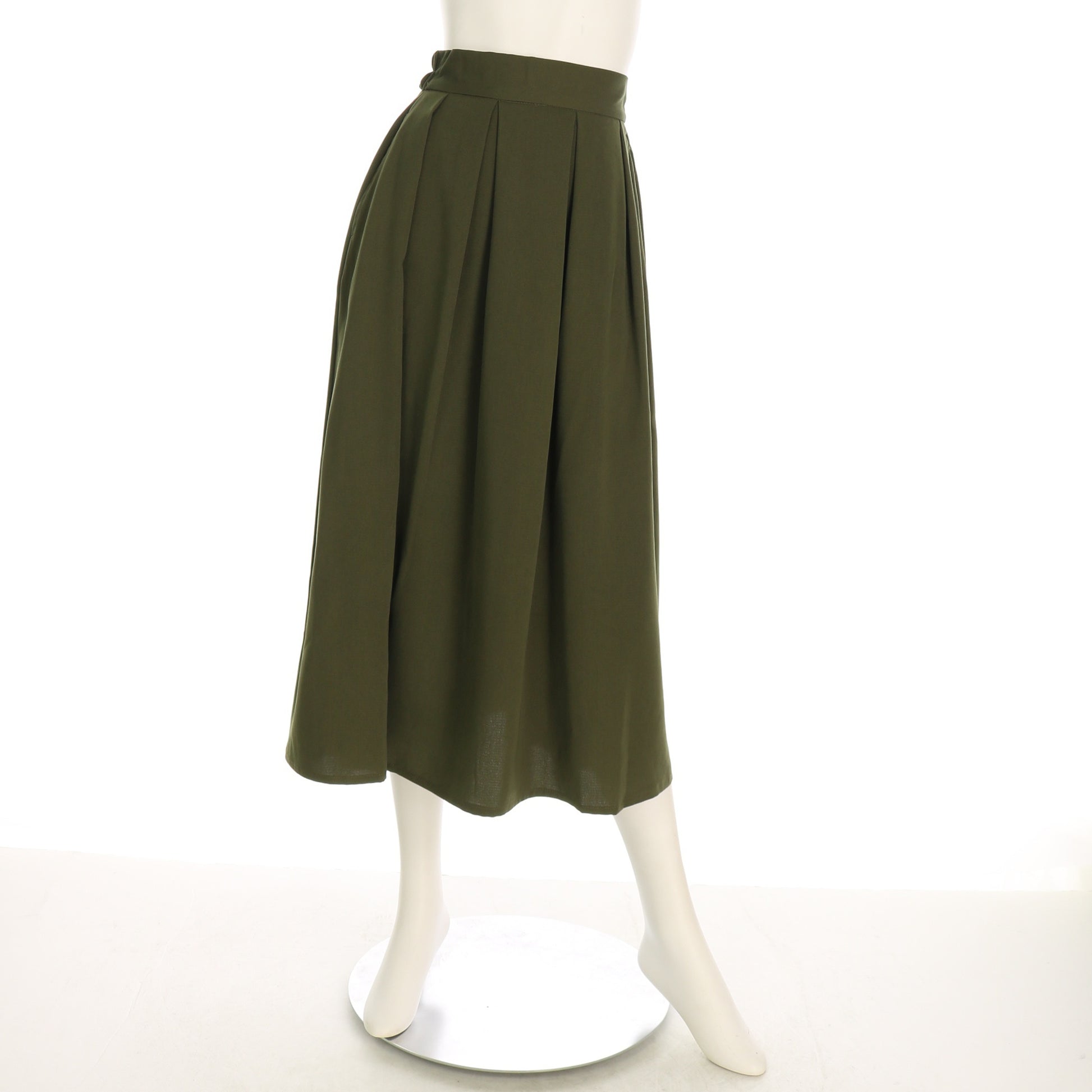タックデザインがポイントのスカート。小花柄ブラウスを合わせて大人可愛いスタイルに、ボーダー柄カットソーを合わせてカジュアル感をプラスするのも◎。