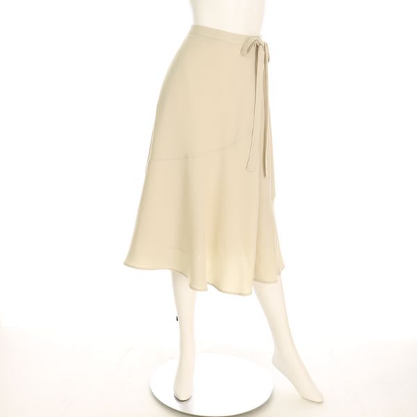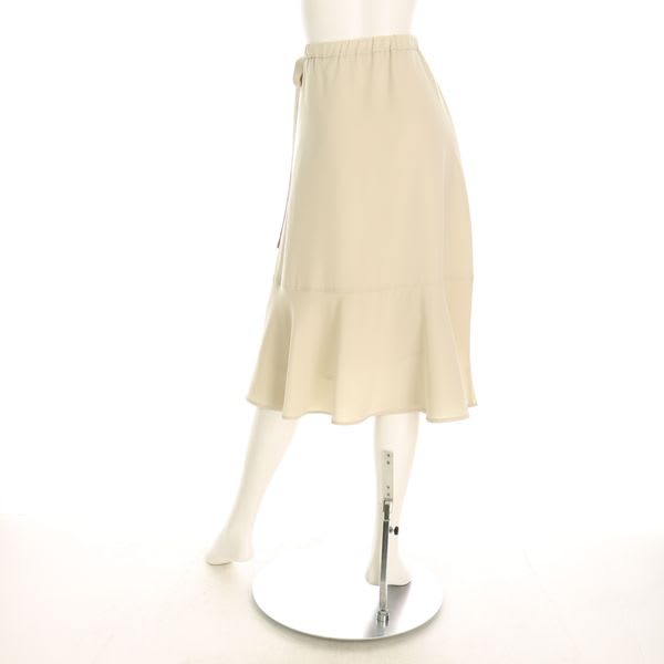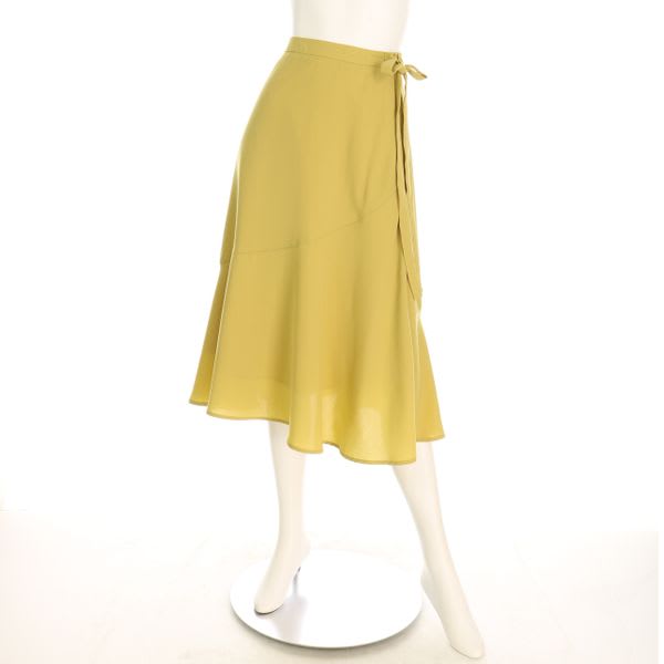 裾フリルのラップ風スカート。ブラウスを合わせて女性らしいスタイルに、カットソーを合わせてカジュアルMIXスタイルも素敵ですね!