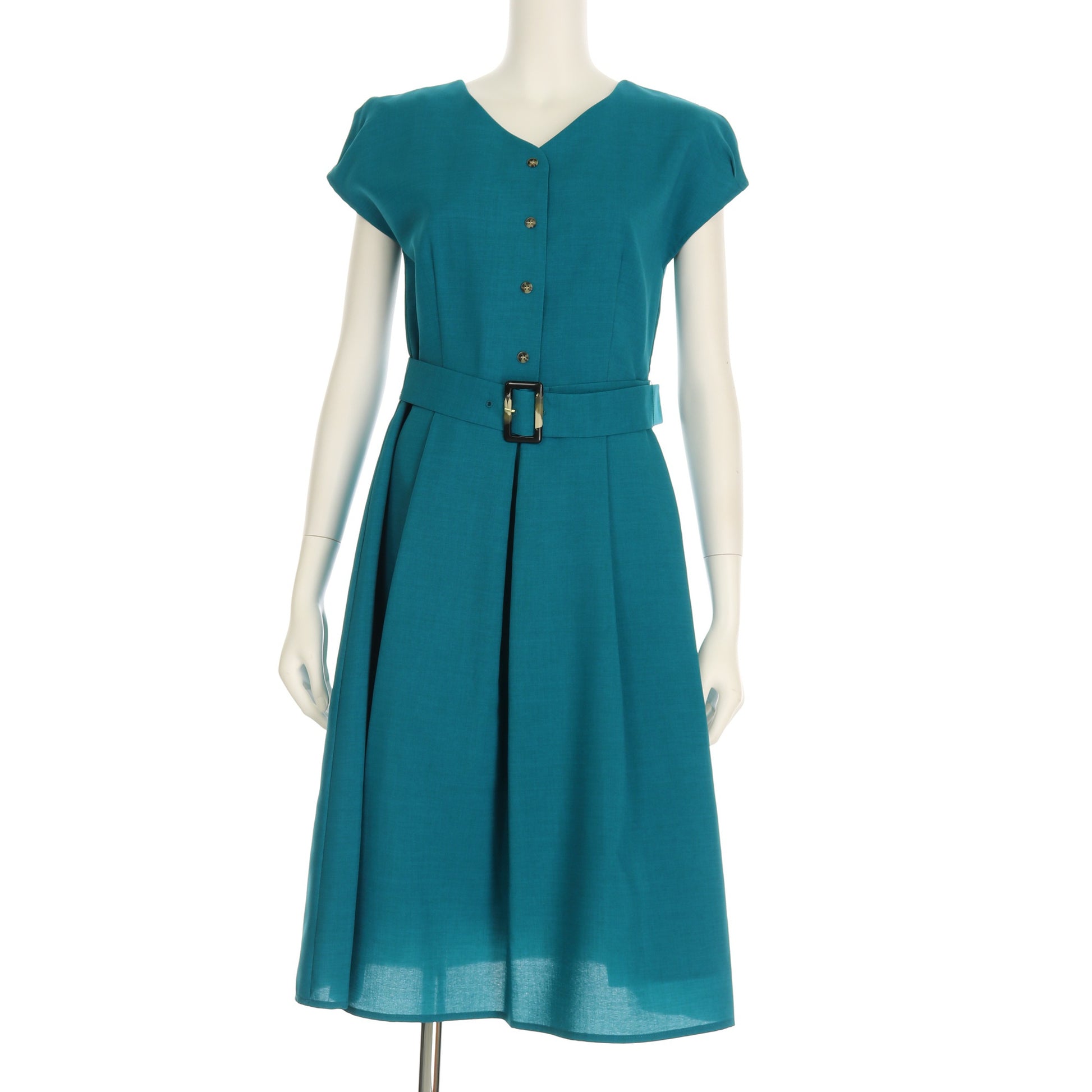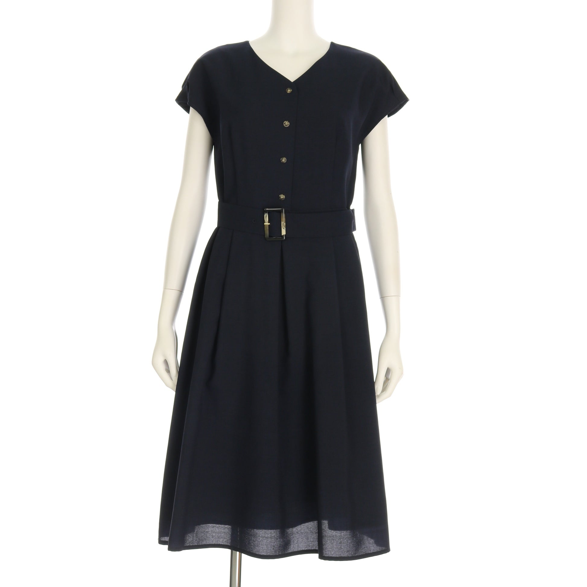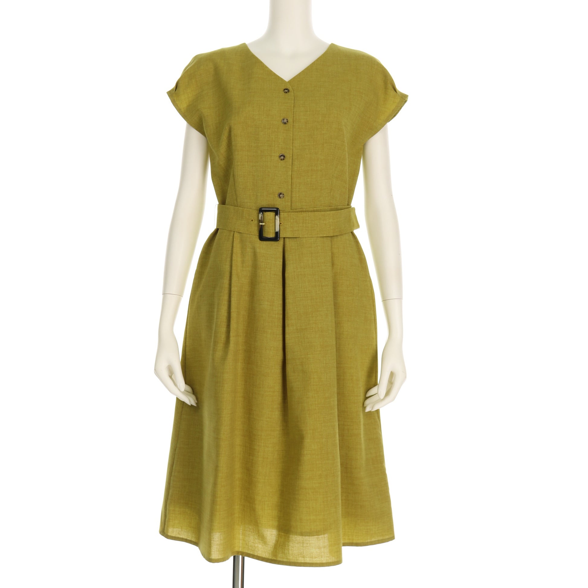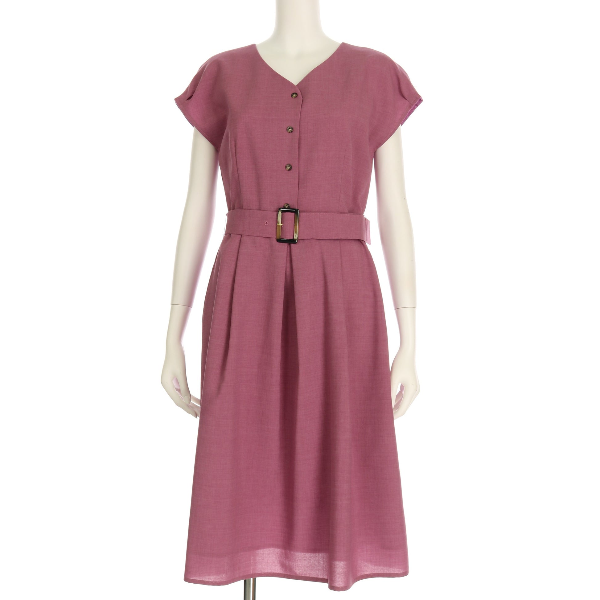 ベルト付きのフレンチスリーブワンピース。ストラップパンプスを合わせてフェミニンな着こなしに、サンダルを合わせてラフに着こなしても◎です。(ボタンは飾りボタンです)