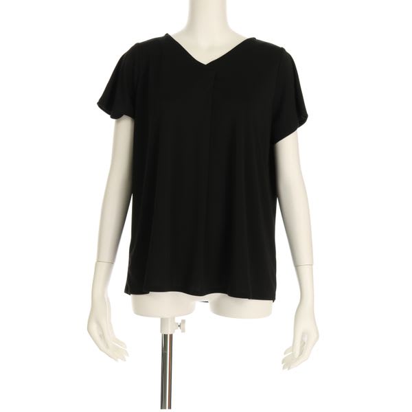 シンプルデザインのVネックカットソー。タイトスカートを合わせてオフィスカジュアルに着こなしたり、デニムパンツを合わせてラフに着こなすのも◎です。