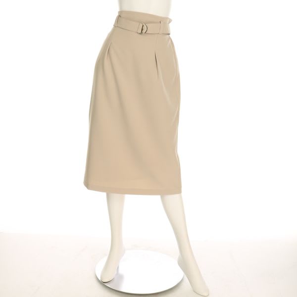Dカンベルト付きのタック入りタイトスカート。襟付きのシャツを合わせてオフィススタイルに着こなしたり、総レースのブラウスを合わせて女性らしい着こなしが素敵ですよ。
