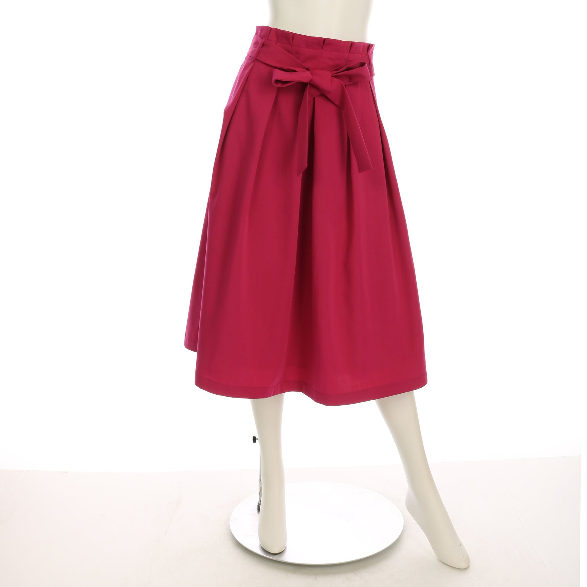 リボンベルト付きのタックスカート。リブカットソーを合わせてカジュアルスタイルに、とろみブラウスを合わせてレディライクに着るのも◎。