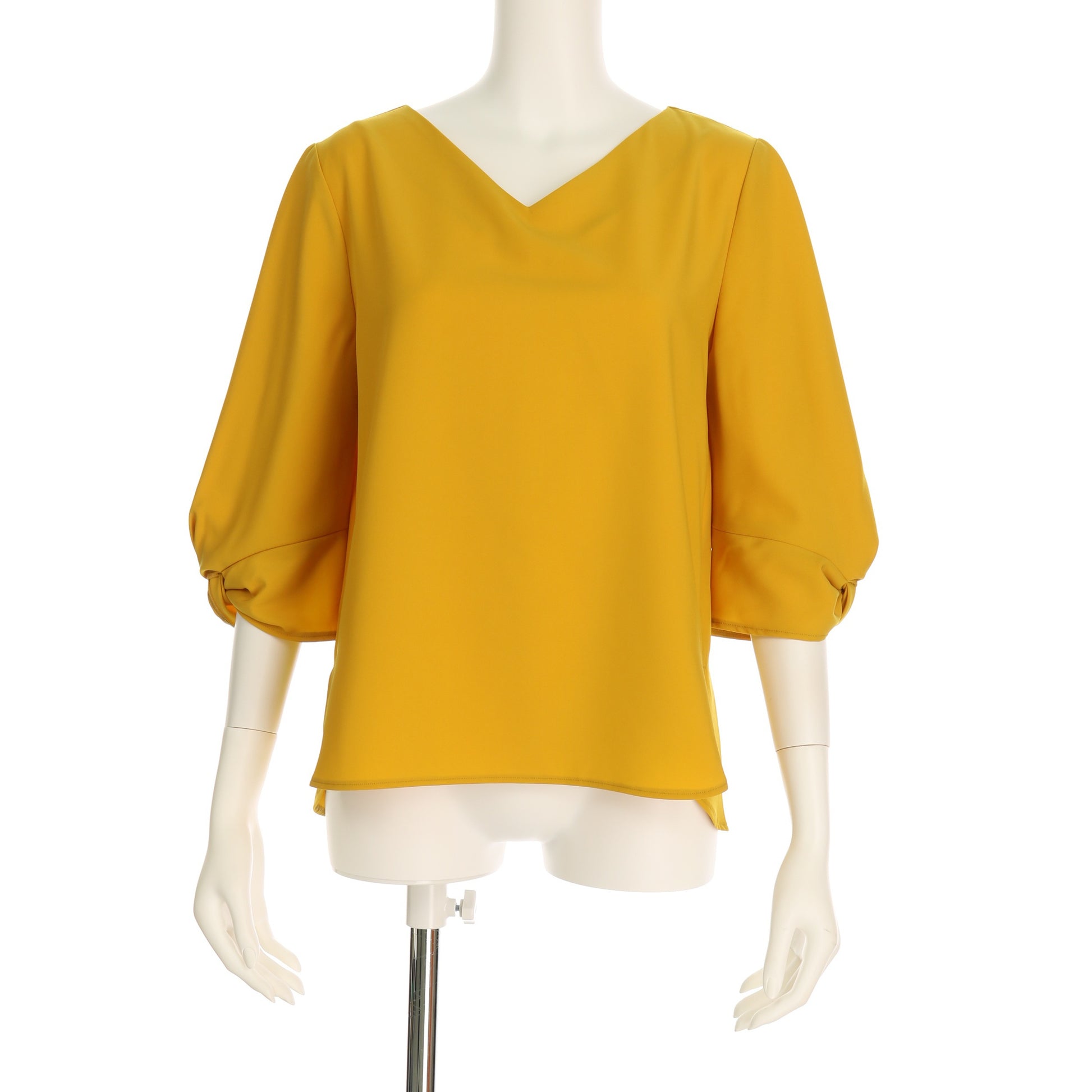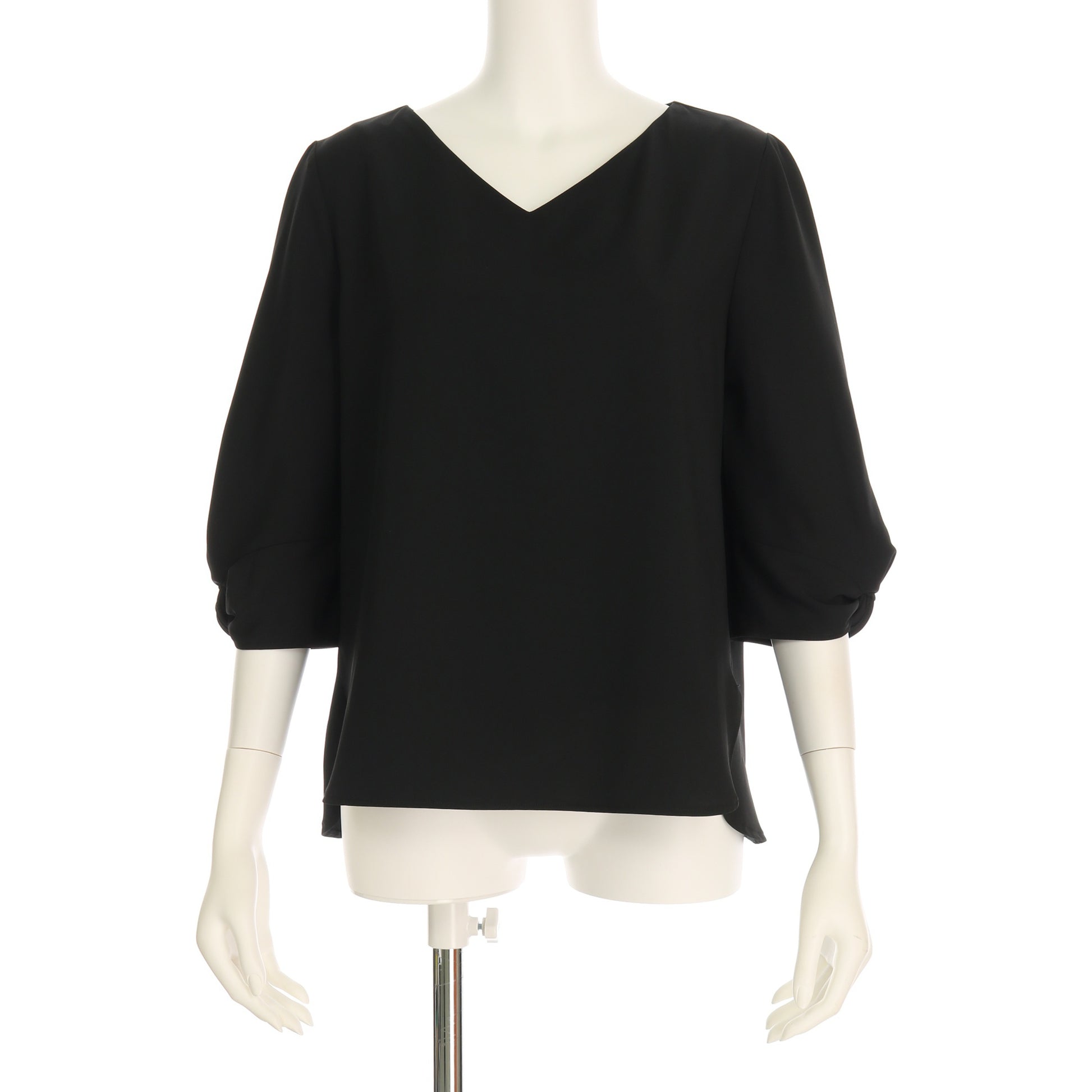 バルーンスリーブのVネックブラウス。袖口のリボンデザインが女性らしい印象に♪タックパンツを合わせてゆったりとした着こなしに、タイトスカートを合わせてレディライクな着こなしもおすすめです。