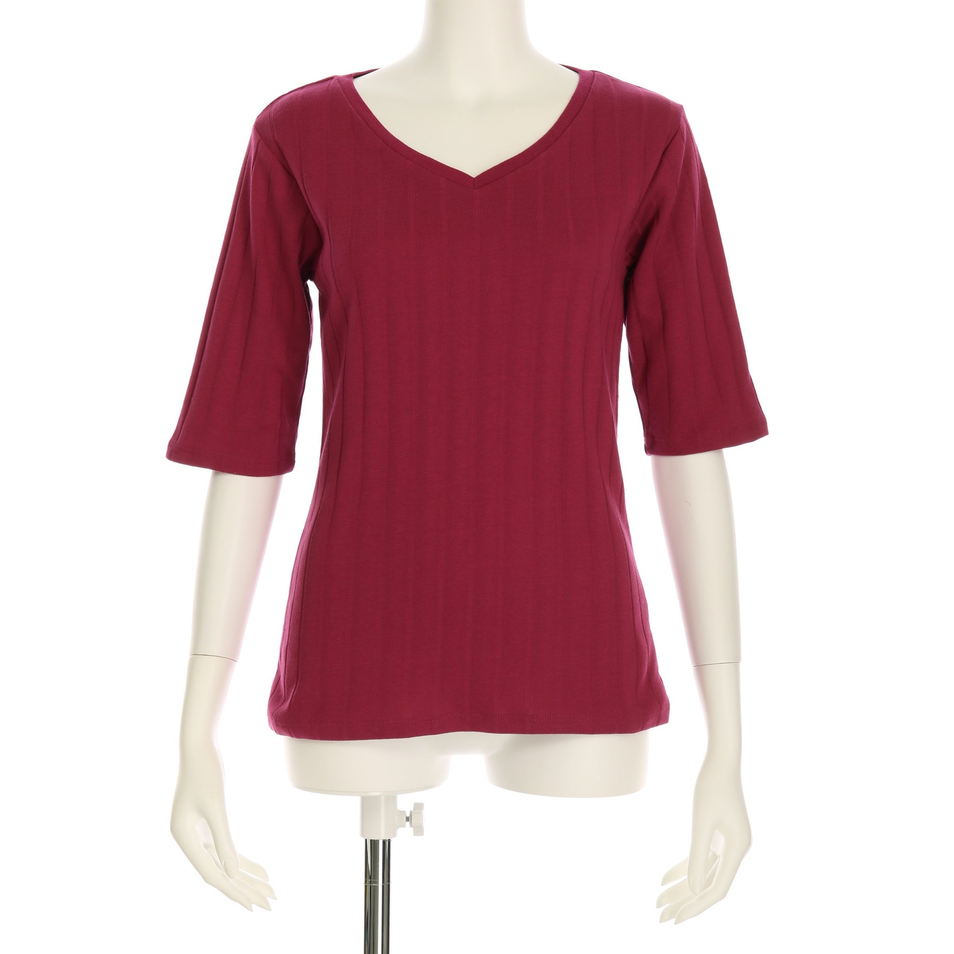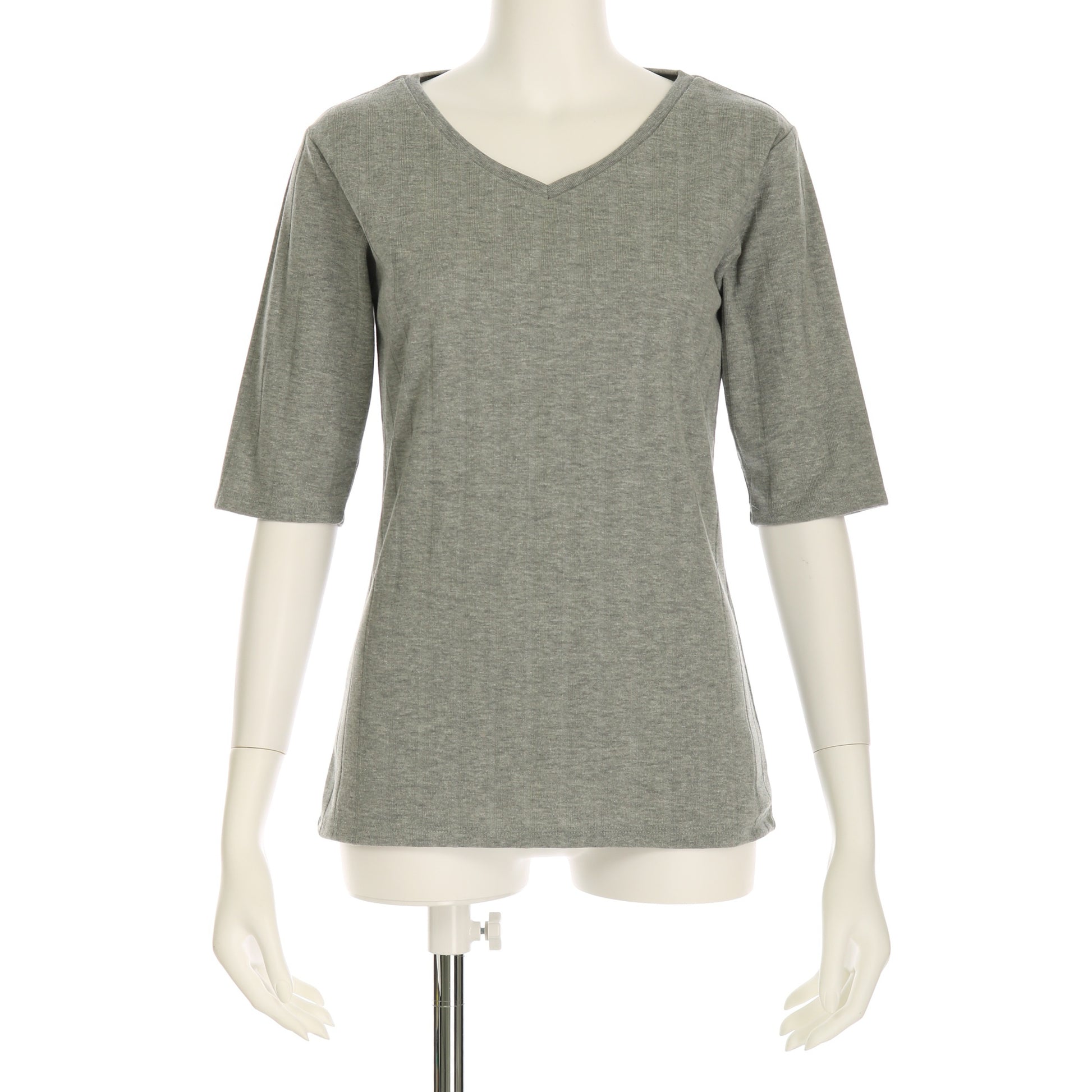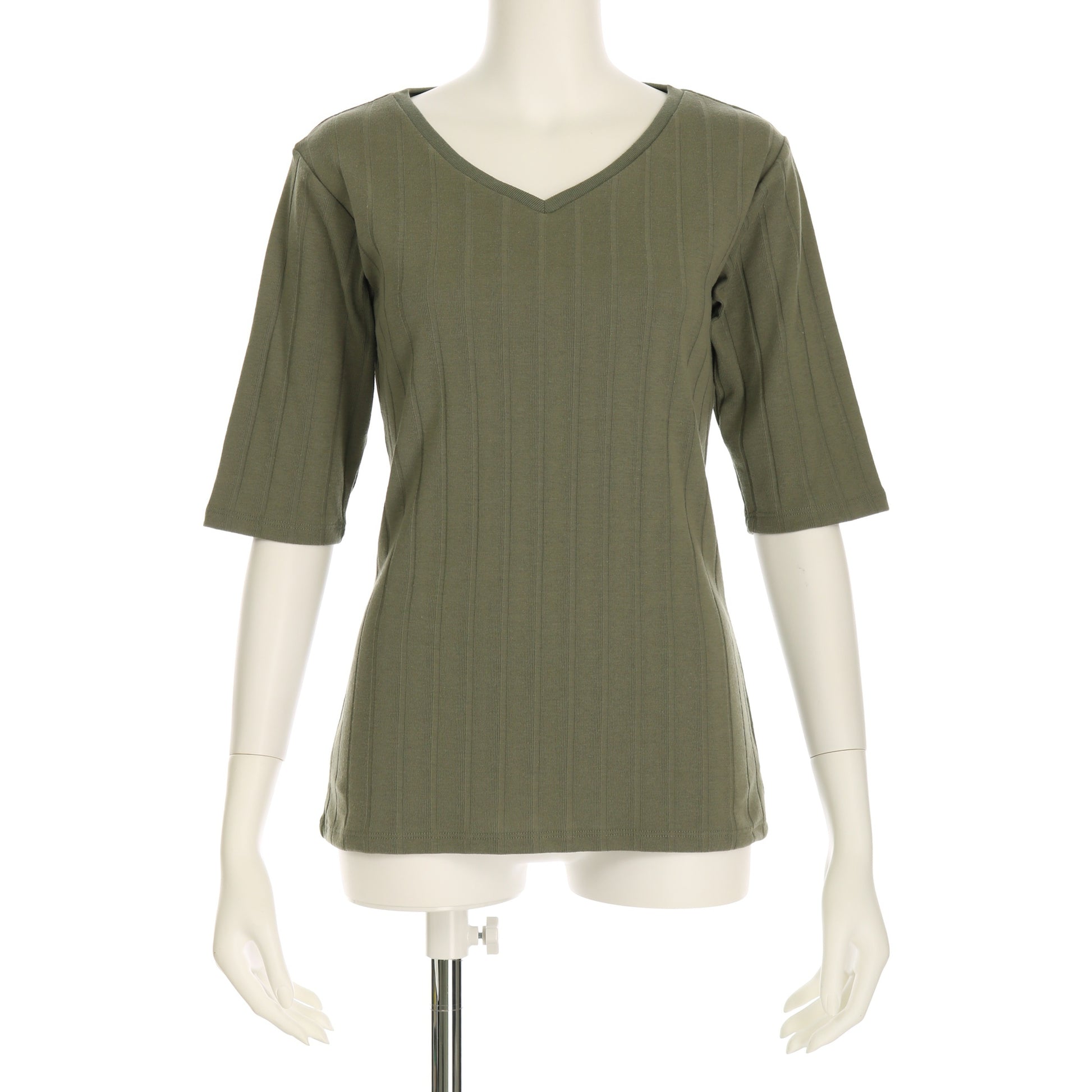 シンプルデザインのVネックカットソー。フレアスカートを合わせてフェミニンに、ワイドパンツを合わせてラフに着こなしてもいいですね!