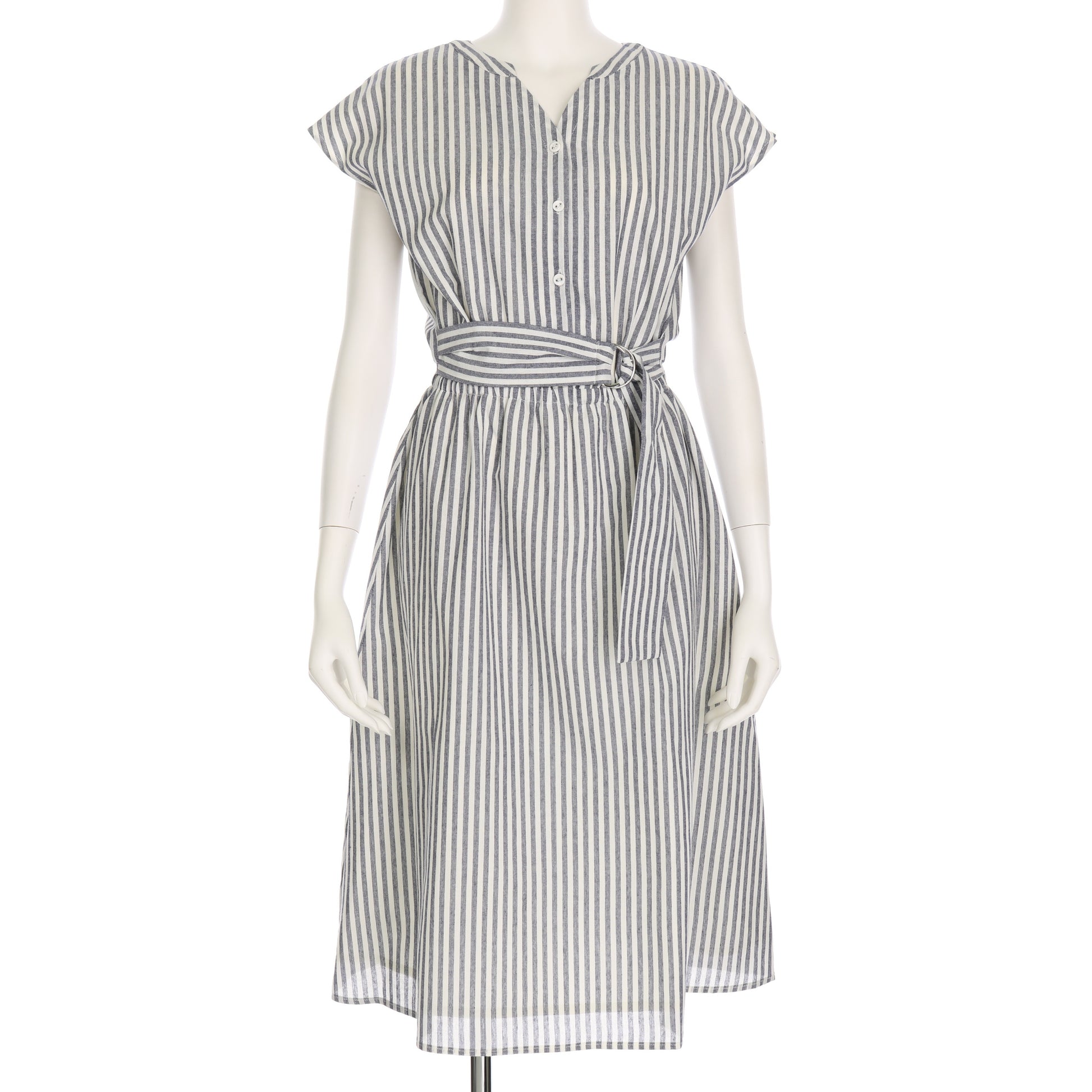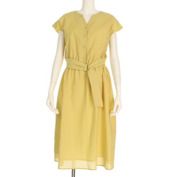 ウエストのベルトデザインがポイントのワンピース。裏地付きなので1枚で着られるのも嬉しいですね!
